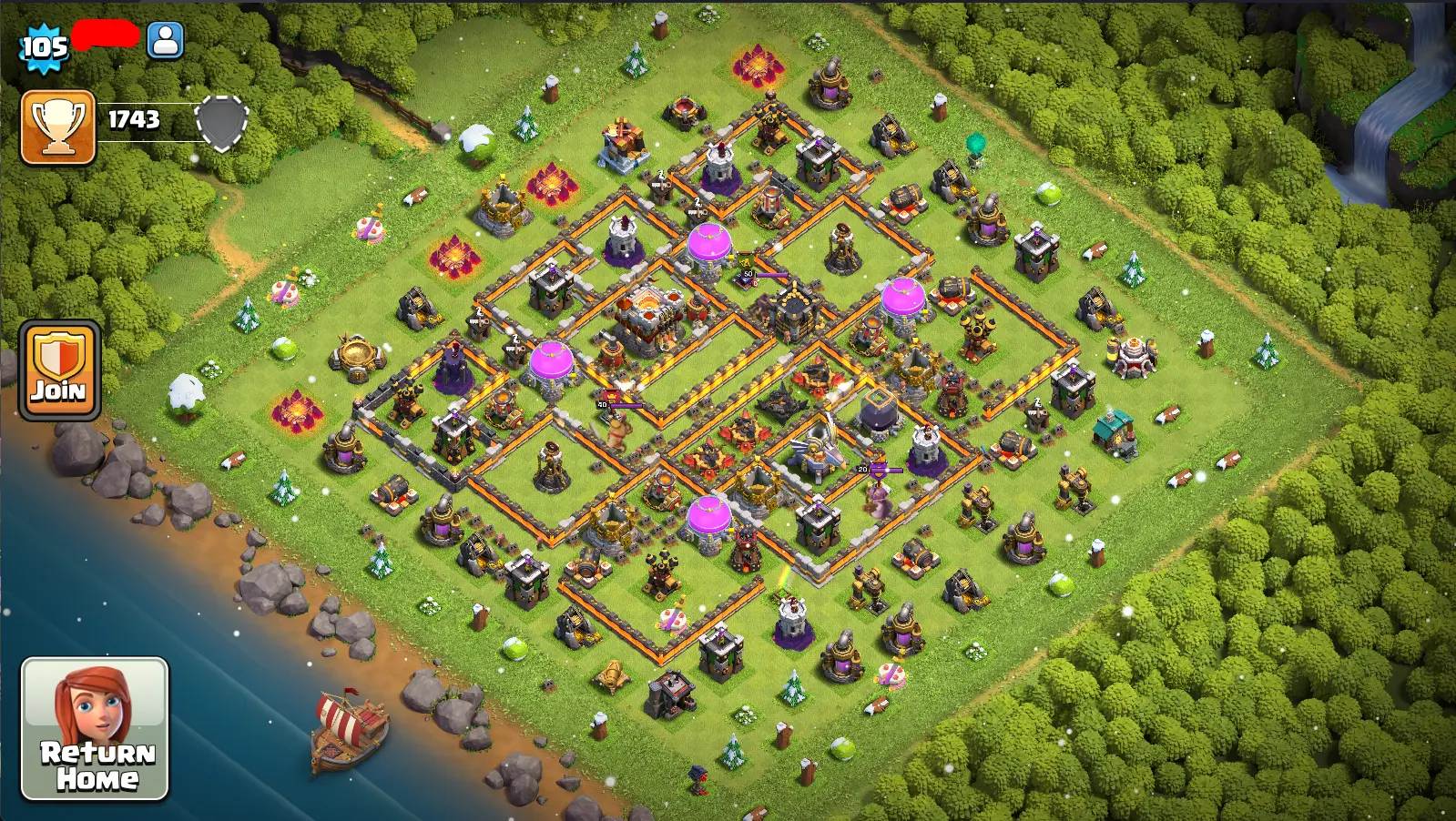 TH 11 🏆 | 105 LVL 📜 | 40 BK🧙 | 50 AQ🕹️ | 20 GW🎮 | 1743 Trophy🔑 | Many GEMS⚡ | INSTANT DELIVERY/FULL ACCESS | #CoC617