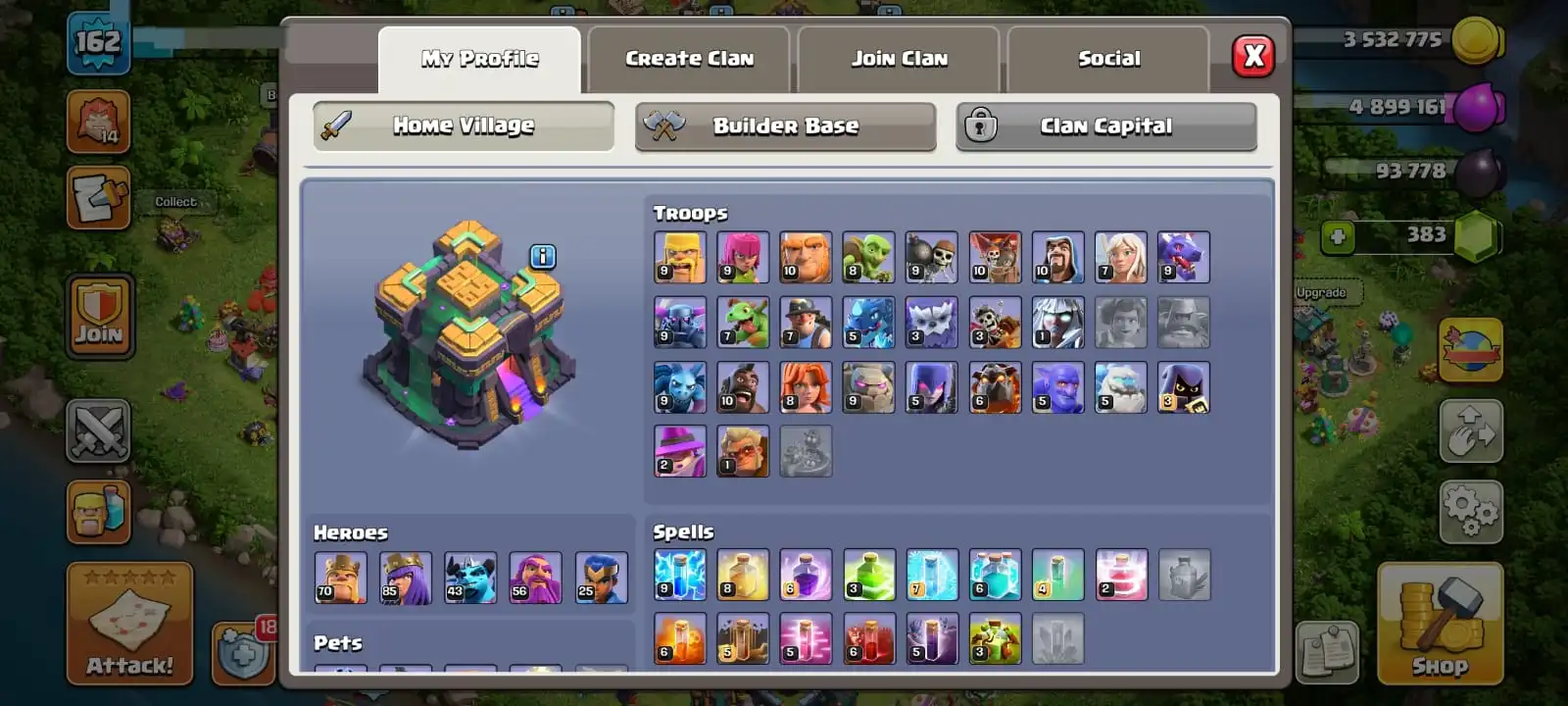 TH 14 ALL MOST MAX🔥MENDALS 715🔥HEROES 70-85-43-56-25 SPIKY BALL & FROZEN ARROW & FIRE BALL & ROCKET SPEAR ON🔥JUNGLE & CLASHRAMA SCENERY🔥MAGIC ITEMS READY🔥FULL ACCESS ACCOUNT🔥