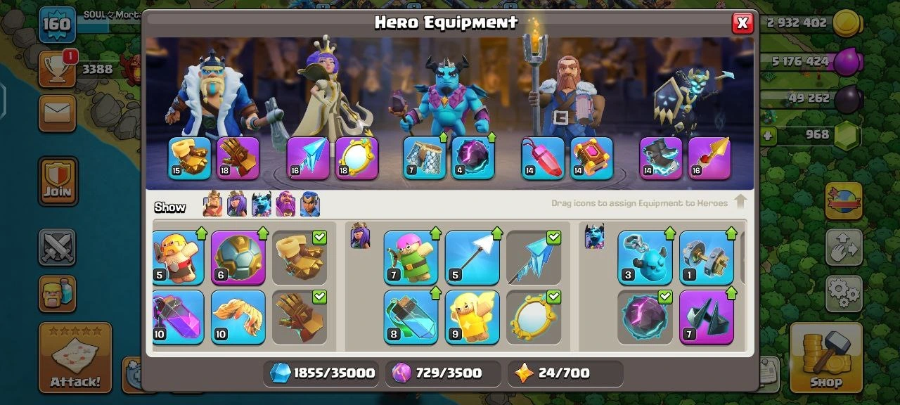 TH 14 RARE NEAR MAXED | 67 BK – 63 AQ – 47 GW – 44 RC – 25 BM | STRONG TROOPS & SPELLS | PREMIUM HERO EQUIPMENT | BUILDER HALL 9 WITH HIGH TROOPS | 3000+ TROPHIES | NAME CHANGE AVAILABLE | SAFE & INSTANT DELIVERY