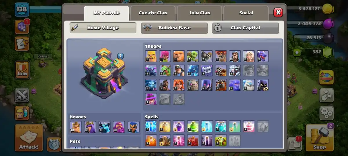 TH 14 SEMI MAX🔥MENDALS 402🔥HEROES 48-62-41-28-18🔥JUNGLE & CLASH RAMA SCENERY🔥FULL ACCESS ACCOUNT🔥