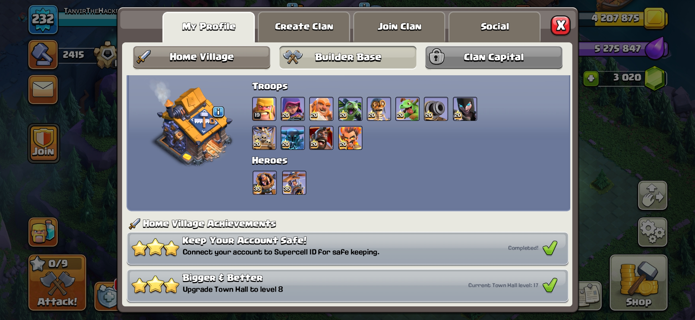 TH 17 5 HERO MAX | BK 100 AQ 100 MP 90 GW 75 RC 50 | BEST HERO EQUIPMENT | 553 CWL MEDAL | NAME CHANGE POSSIBLE | 9 HERO SKIN