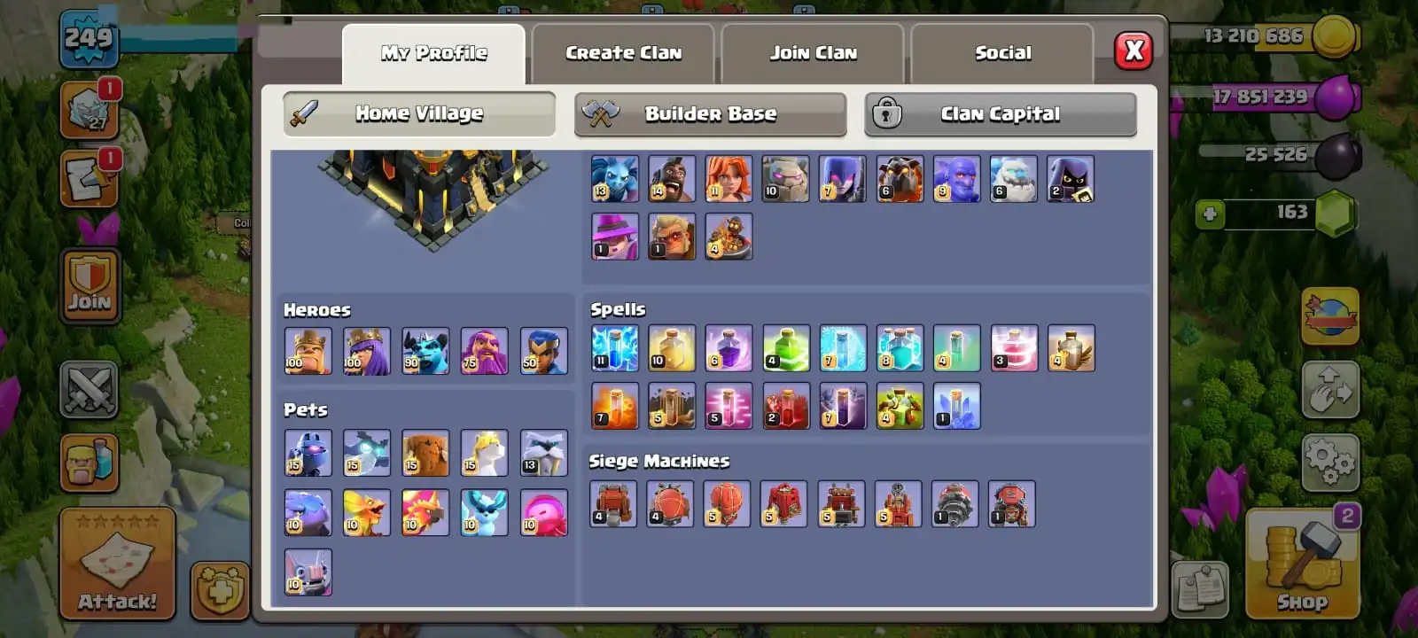 TH 17 MAXED DEFENCE🔥2 EPIC EQUIPMENT MAX🔥HEROES MAX 100-100-90-75-50 GIANT GAUNTLET & SPIKY BALL & MAGIC MIRROR & SPIKY BALL & ROCKET SPEAR ON🔥MAGIC & JUNGLE SCENERY🔥BUILDER HALL FULL MAX🔥FULL ACCESS ACCOUNT🔥