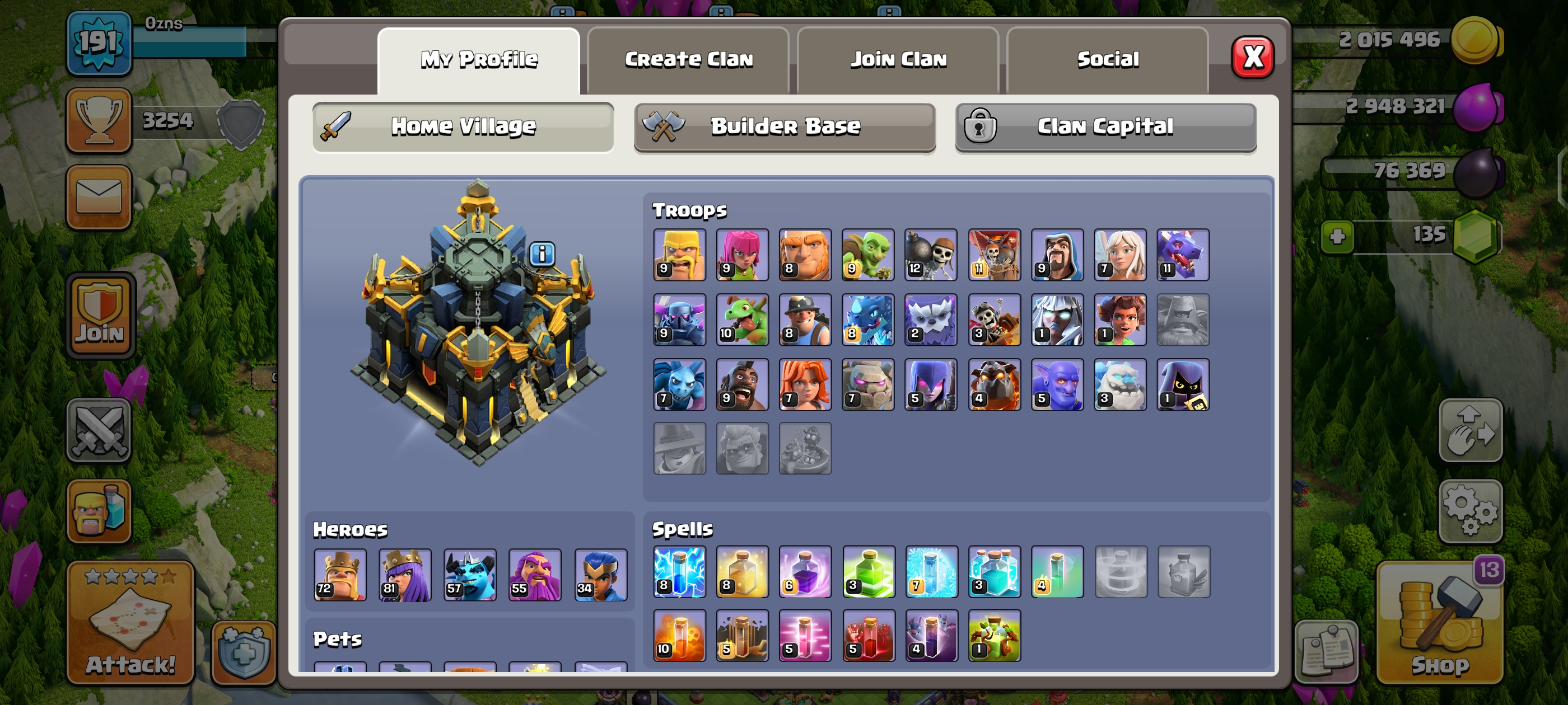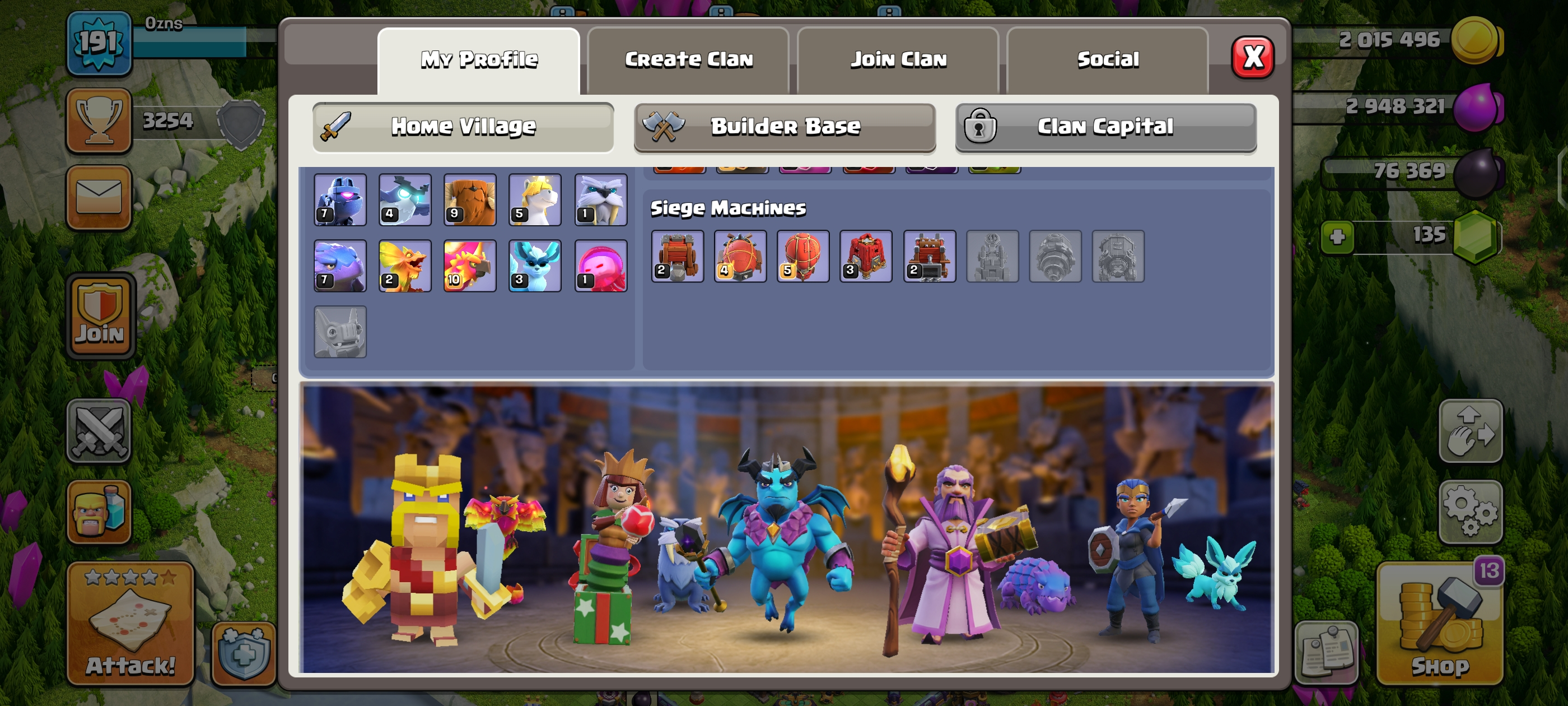 TH 17 Semi Max 🤩 , 1.4k+ Raid medals😱 , 3 Hero Skins💥 , Heroes 72-81-57-55-34 💀 , 191 Xp level 😈 | Both Android and iOS | Instant Delivery 🚚