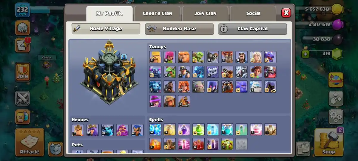 TH 17 SEMI MAX🔥PUMPKIN SCENERY🔥HEROES 87-95-62-75-43🔥MAGIC ITEMS READY🔥MENDALS 165🔥FULL ACCESS ACCOUNT🔥