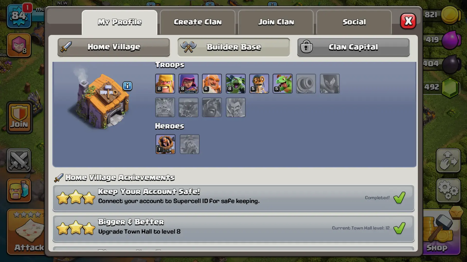 TH12 | 84 LVL | 1707 Trophy | 492 GEMS | 32BK | 32AQ | 15GW| 0RC | FULL ACCESS | IOS/ANDROID (SCREENSHOTS INSIDE)