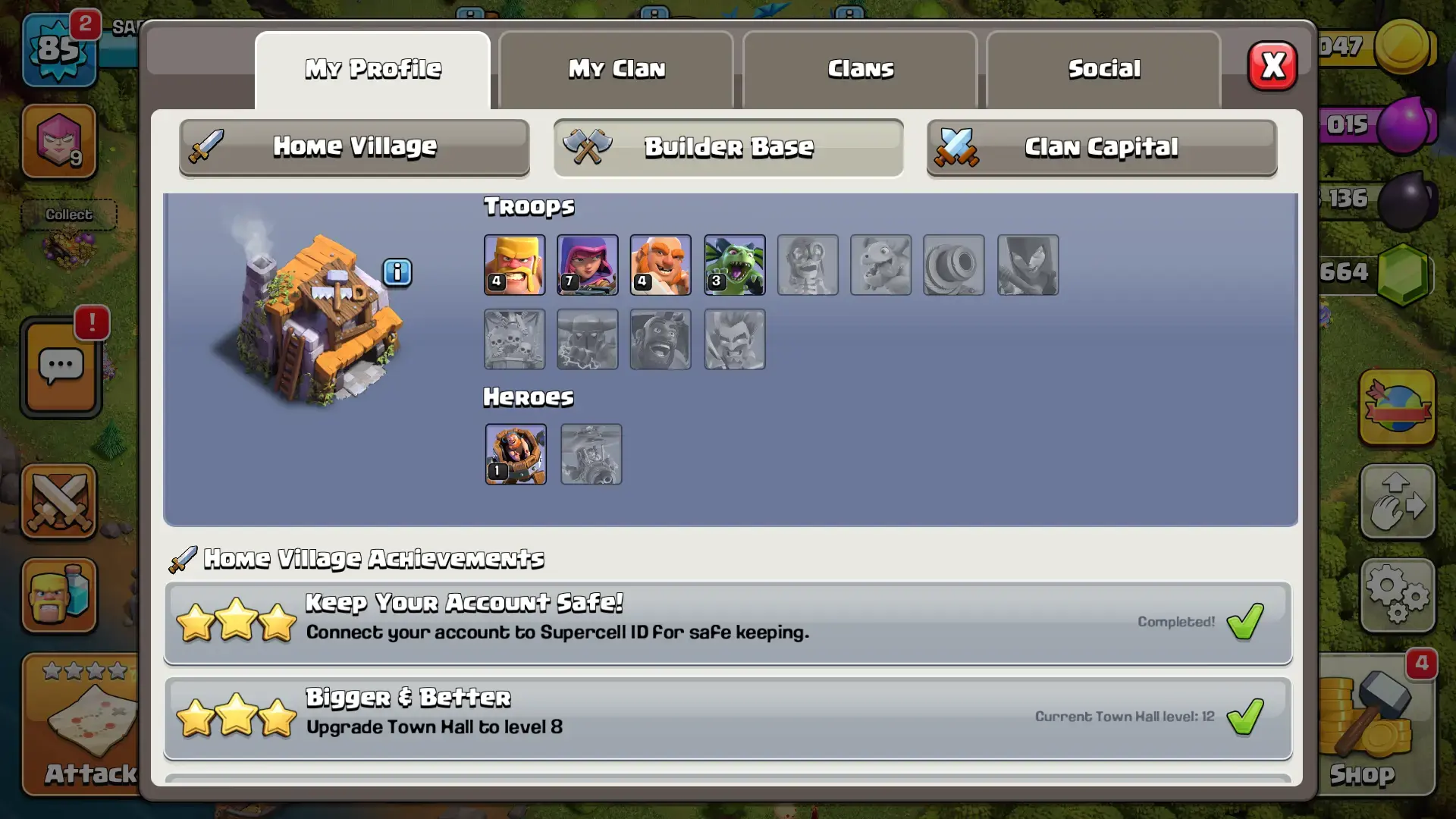 TH12 | 85 LVL | 2210 Trophy | 664 GEMS | 45BK | 46AQ | 20GW| 0RC | FULL ACCESS | IOS/ANDROID (SCREENSHOTS INSIDE)