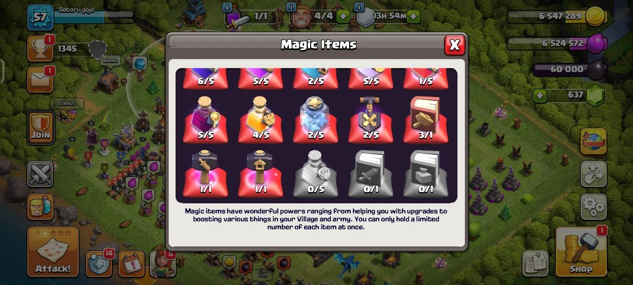 TH13 CHEAP ACCOUNT [ NAME CHANGE FREE 🆓] 💥 HEROES [14-15-44-12-5 ] 💪 TROPHIES 1345🏆 GEMS 637 💎✨️ STACKED MAGIC ITEMS 🔥 INSTANT DELIVERY