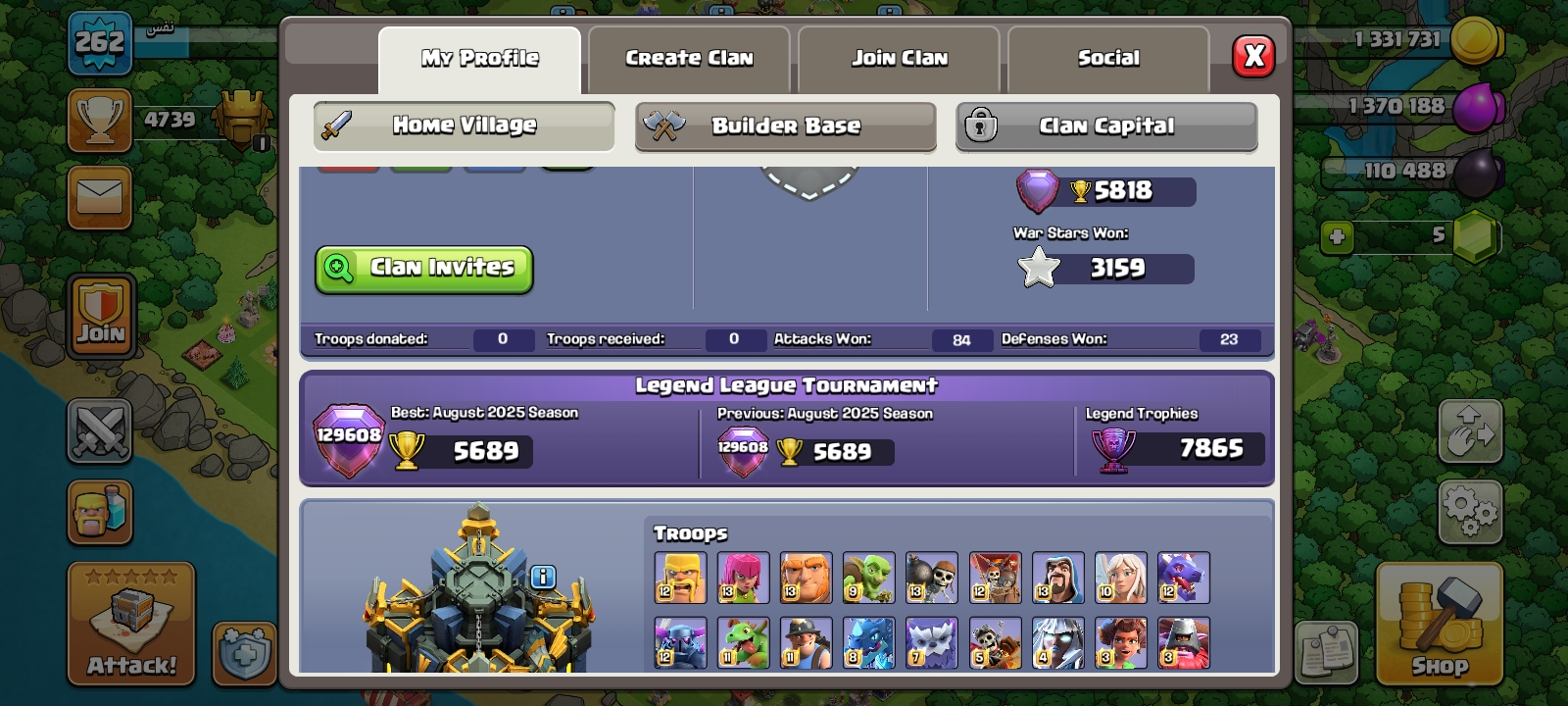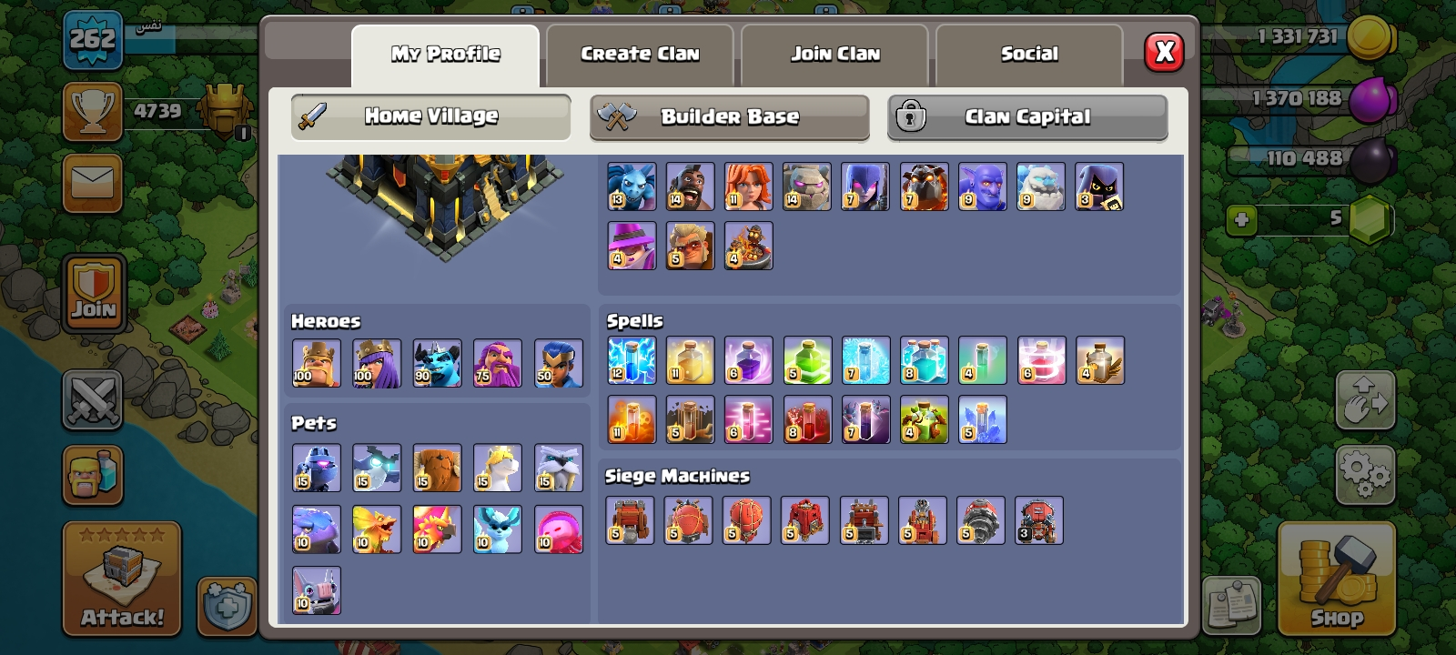 ‼️TH17 (LUXURY) MAX DEFENSE‼️SUPERB PROFILE‼️MAX HEROES‼️MAX TYPE EPIC EQUIPMENTS‼️HIGH LEVEL-262‼️N.C 500 ‼️