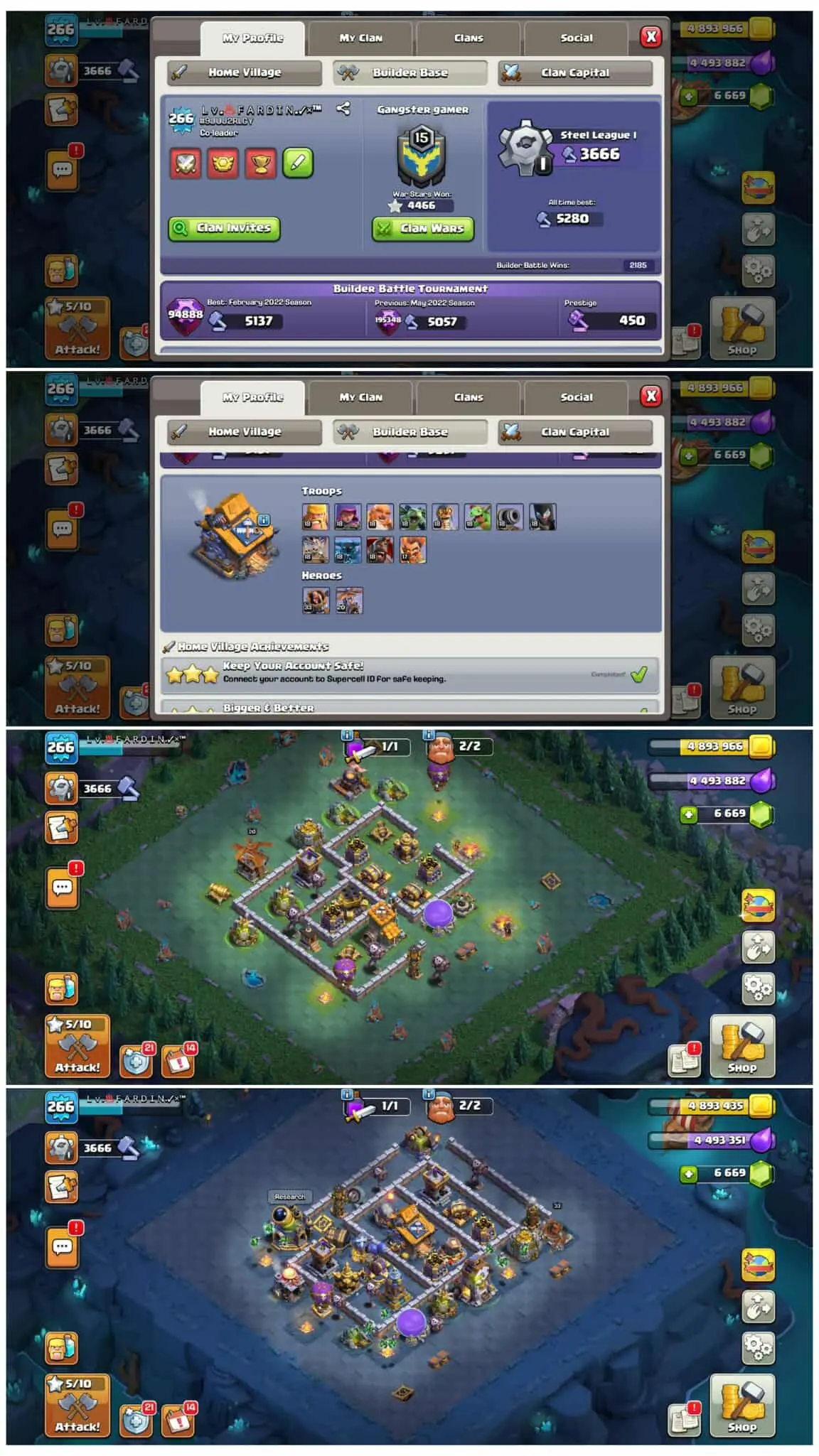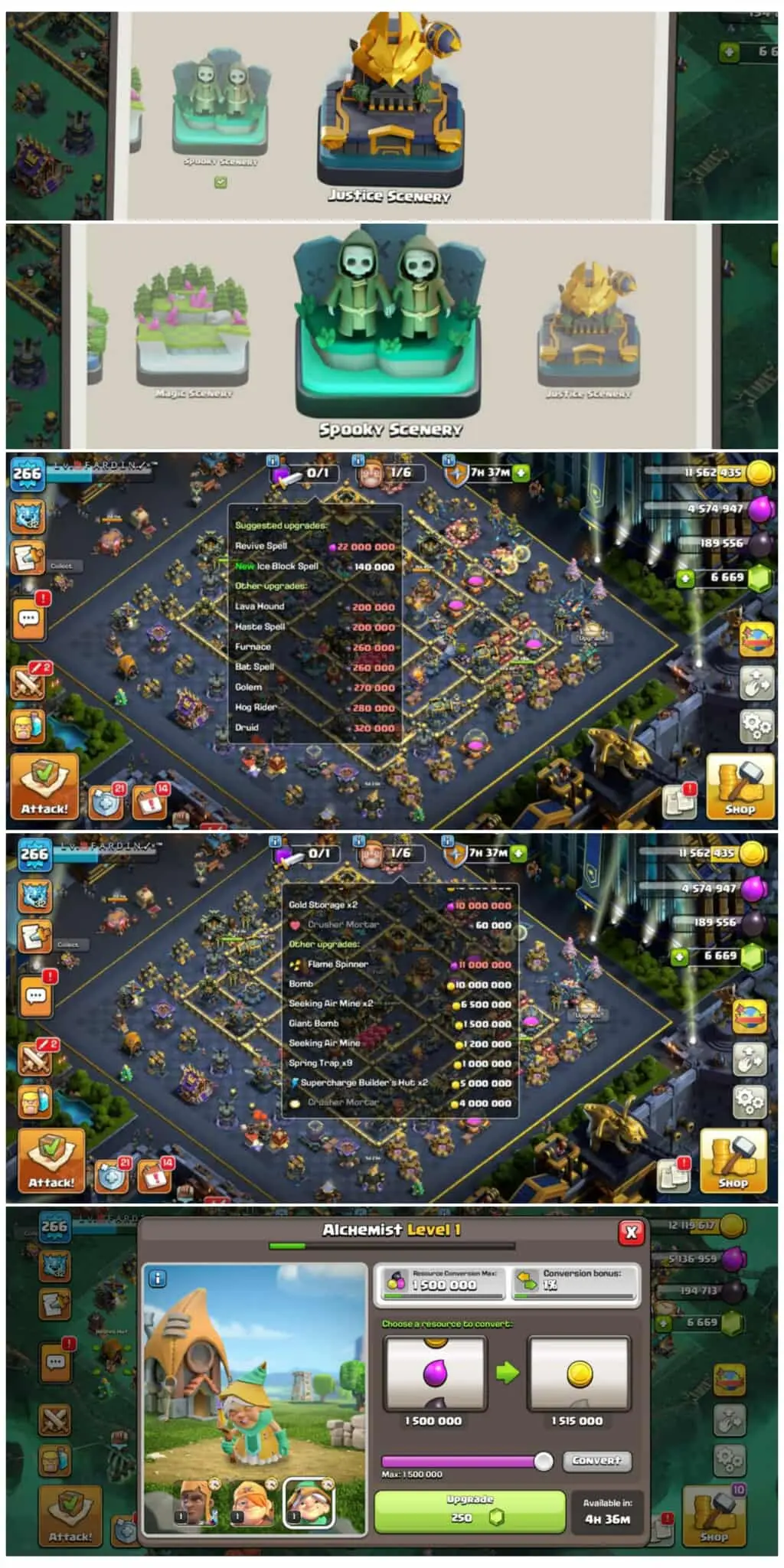 Th17 Max Account 【5 Hero Max】【12/12 Epic】Heros 100-100-90-75-50➤Troops Spell Machine Max➤7000+ Gems➤Justice+Spooky Scenery➤Magic Item