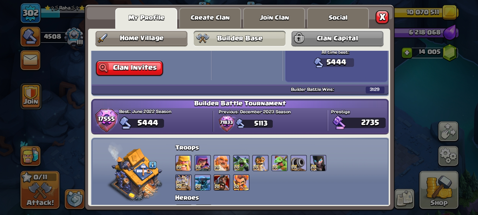 💗TH17 MOST RARE‼️HIGH LEVEL-302 || TOP RANK 717🏆14000 GEMS💫SKINS AND SCENERY💗MAX BUILDER BASE💯GREAT🔥