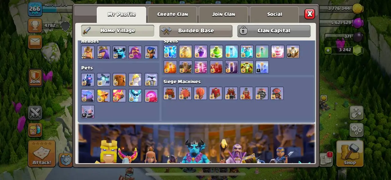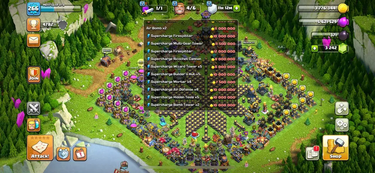 🔥 TOWN HALL 17 ALMOST MAX 🔥 266 EXP 🔥 6 EPICS MAX 🔥 12 EPICS 🔥 LAB MAX [ 2 SPELL LEFT ] 🔥 ALL 5 HEROS FULLY MAXED 🔥 ALL WALLS MAX 🔥 ALL DEFENCE MAX [ HYPER CHARGE LEFT ] ONE OF THE BEST ACCOUNT 🔥 CHEAPEST IN MARKET 🔥