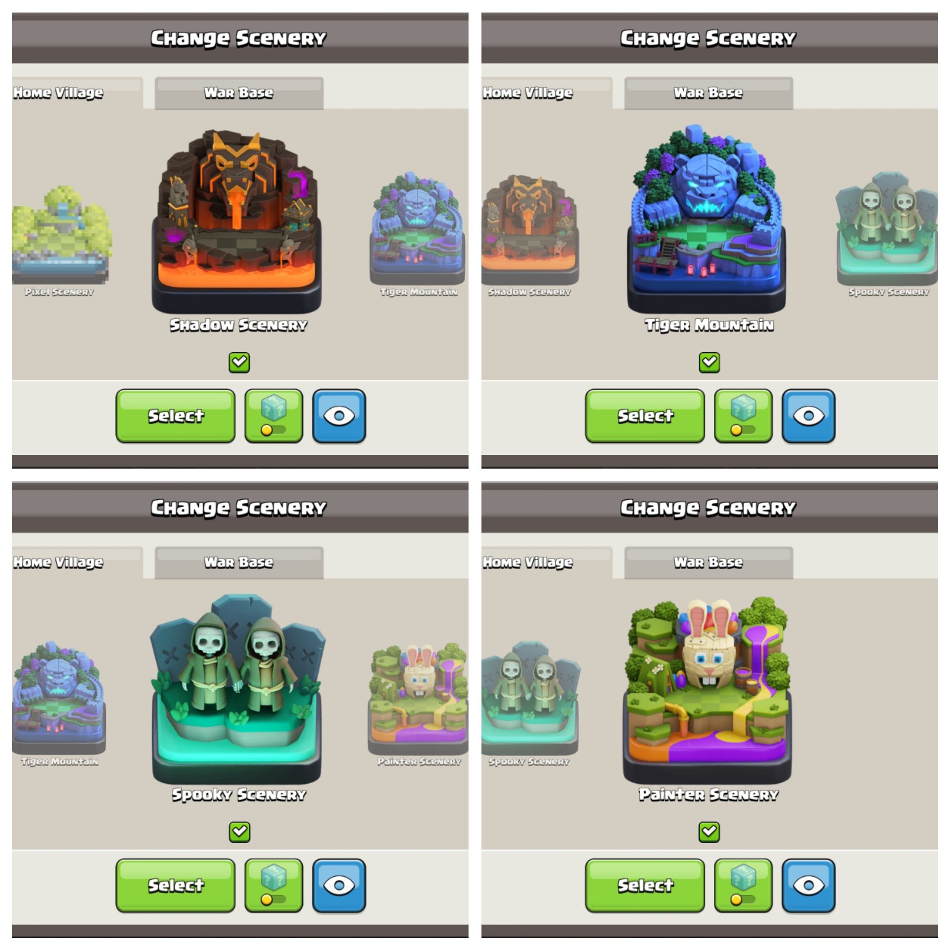 WORLD ONLY ONE-4x LEAGUE SKIN SET-UNLIMITED OBSTACLE-FLOWER-STATUE-TREE-CAKE-29x EQUIPMENT MAX-32x SKIN CLASH OF DRAGON 4x SCENERY-TH17 BOTH VILLAGE MAX TYPE-