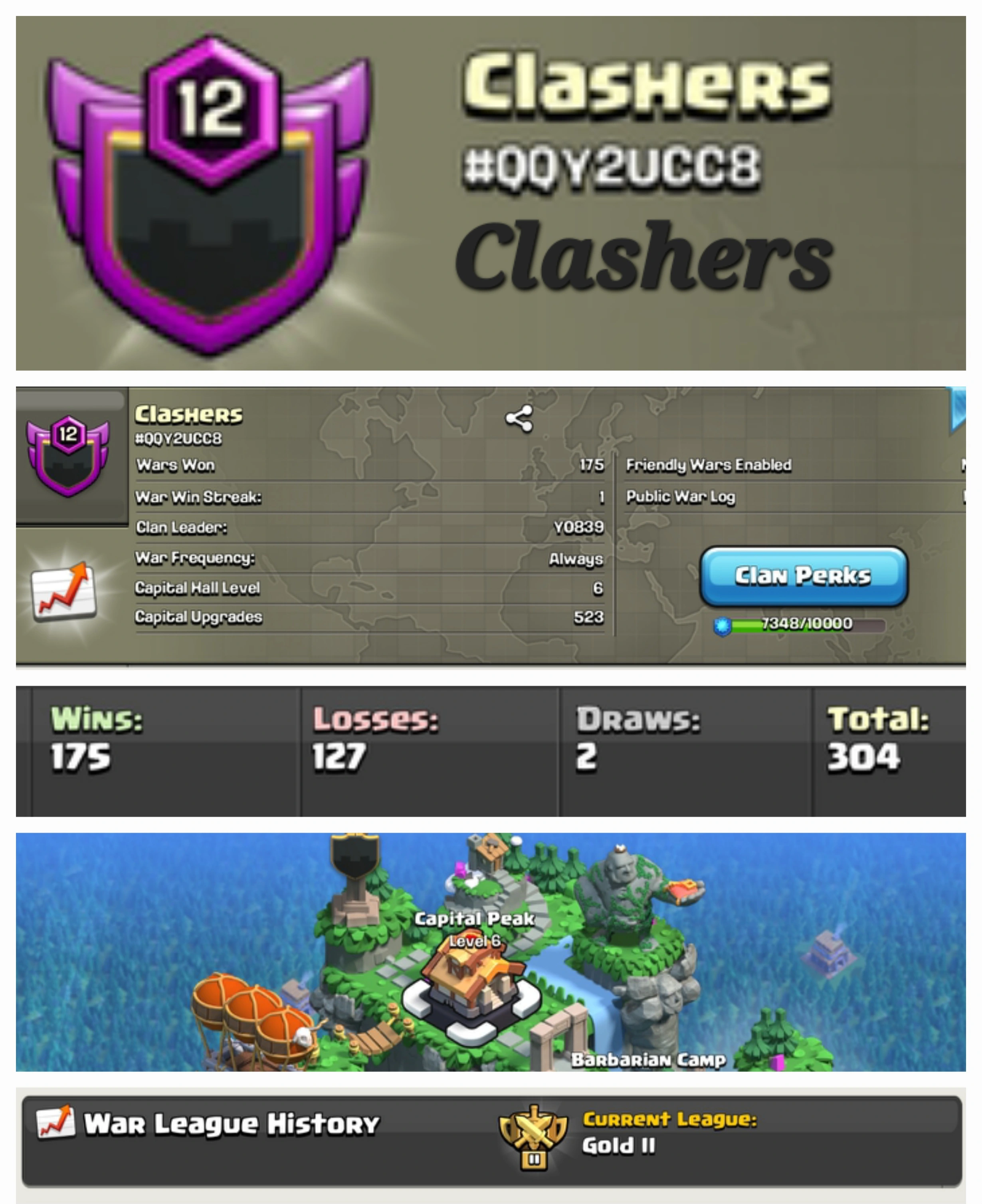 Clashers !! LEVEL 12 !! WIN 175 LOSS 127 !! CAPITAL PEAK 6 !! GOLD LEAUGE 2 !! PERFECT NAME !! CHEAP !! FAST DELIVERY