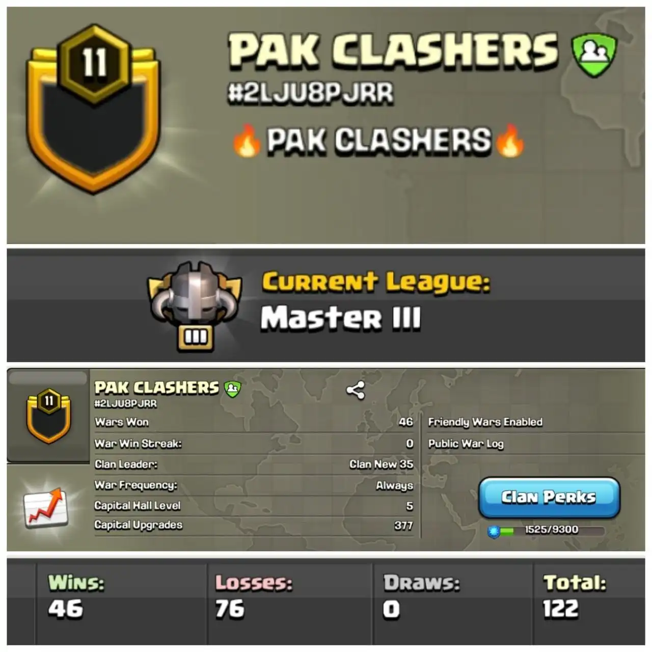 Level 11 clan || clan capital 5 || master 3 || name - PAK CLASHERS