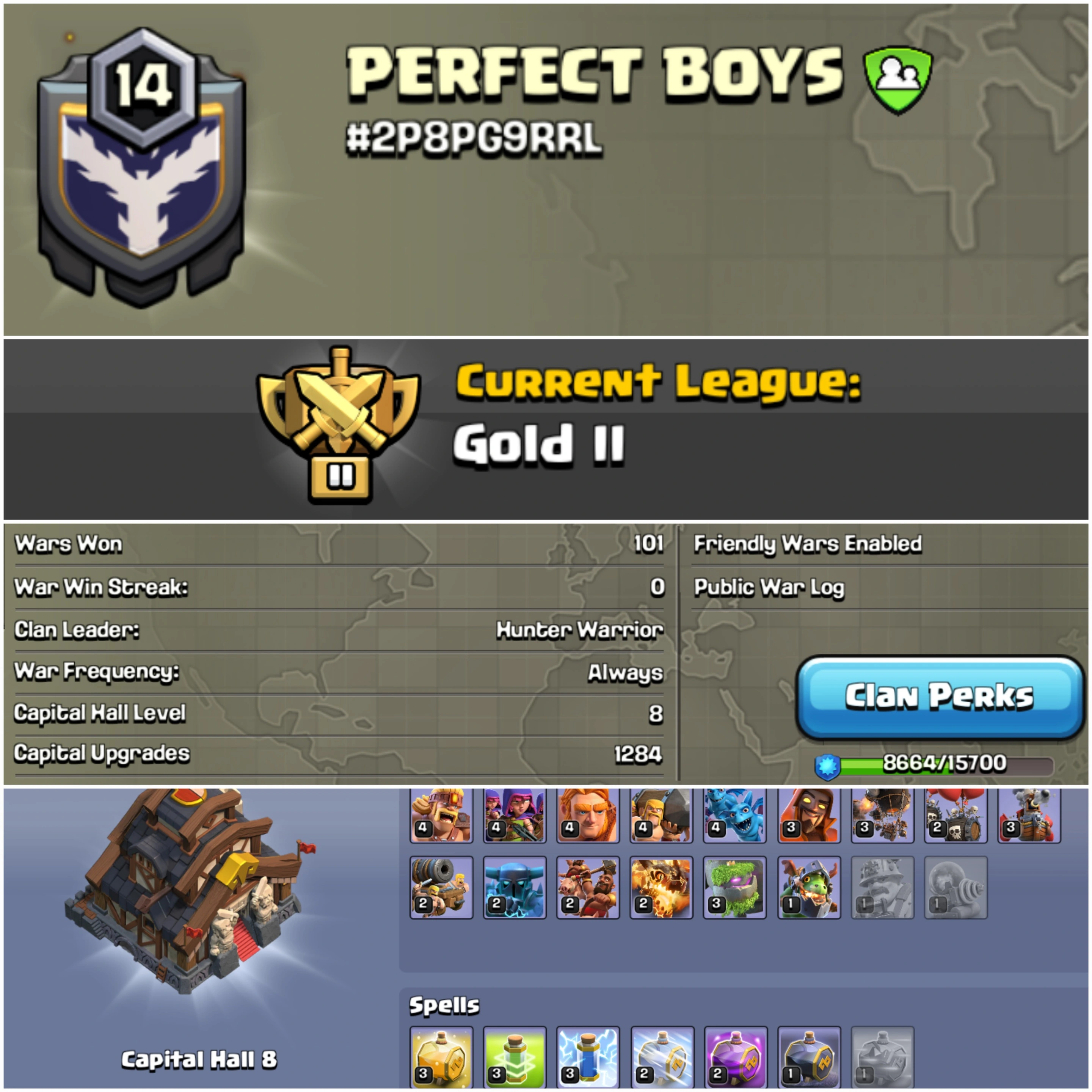 [ FULLY ENGLISH ]🔥NAME- PERFECT BOYS | 💥LVL- 14 |☠️ FULL ENGLISH NAME CLAN | CWL LEAGUE : GOLD 2🏆 | CC: 8!!⚡⚡