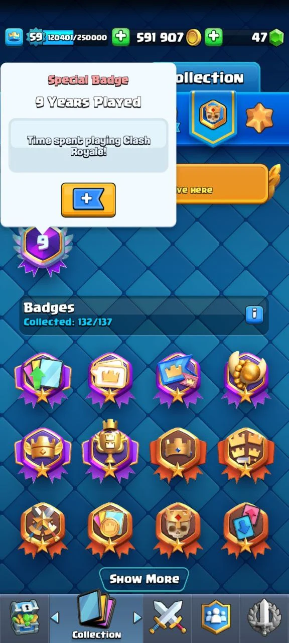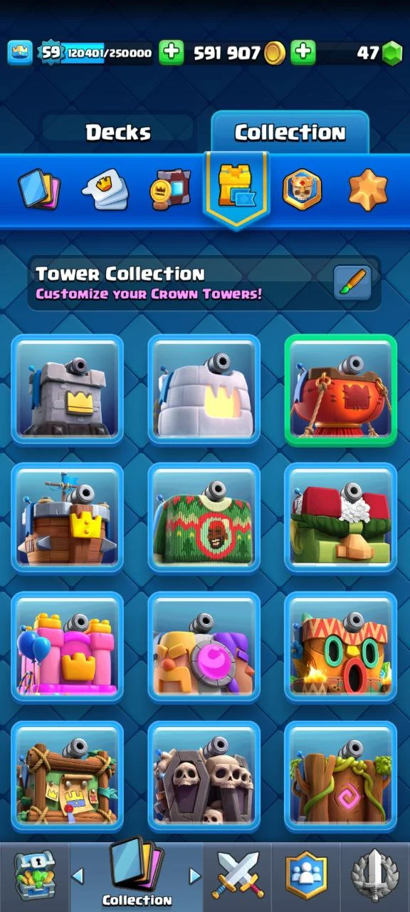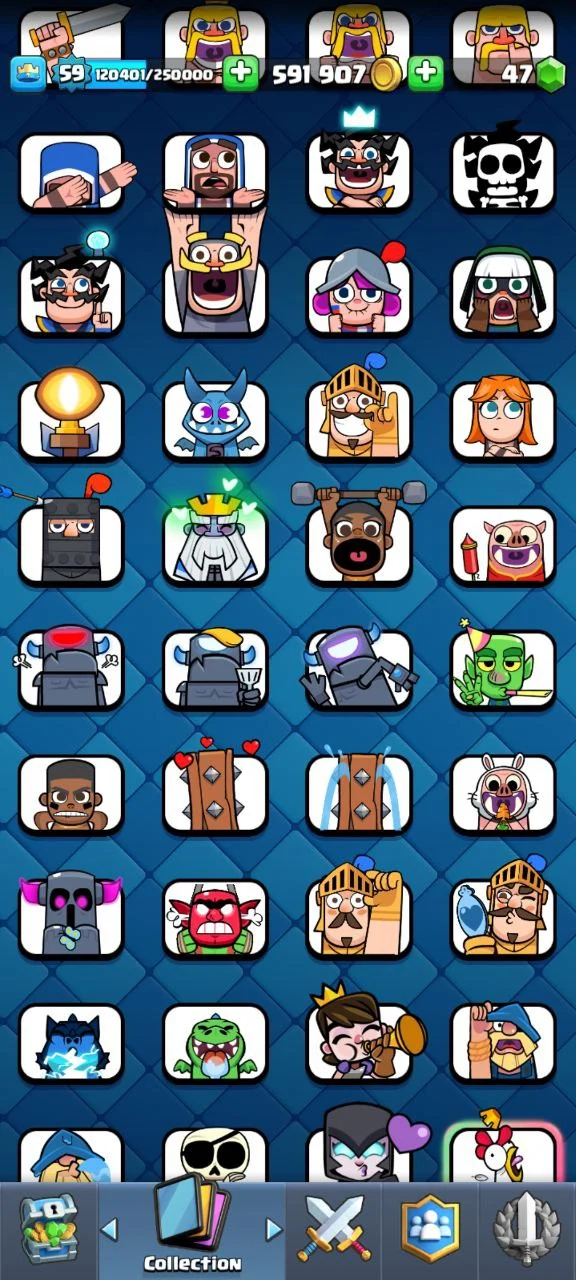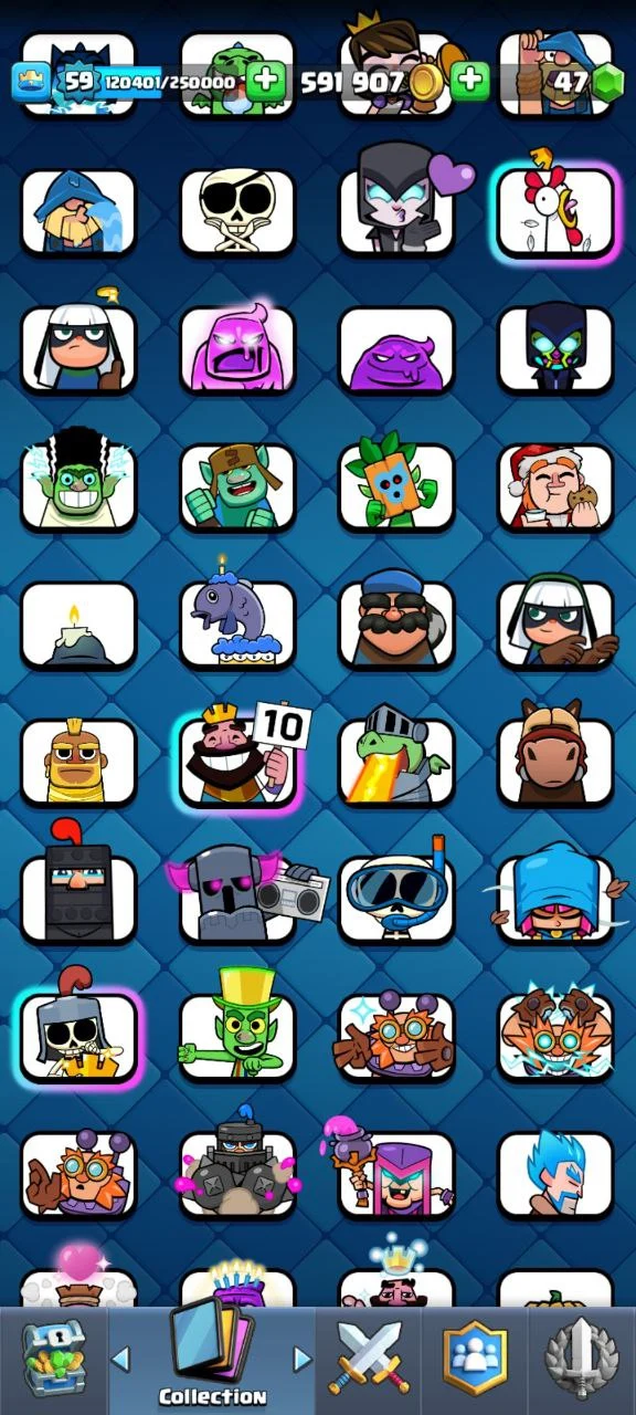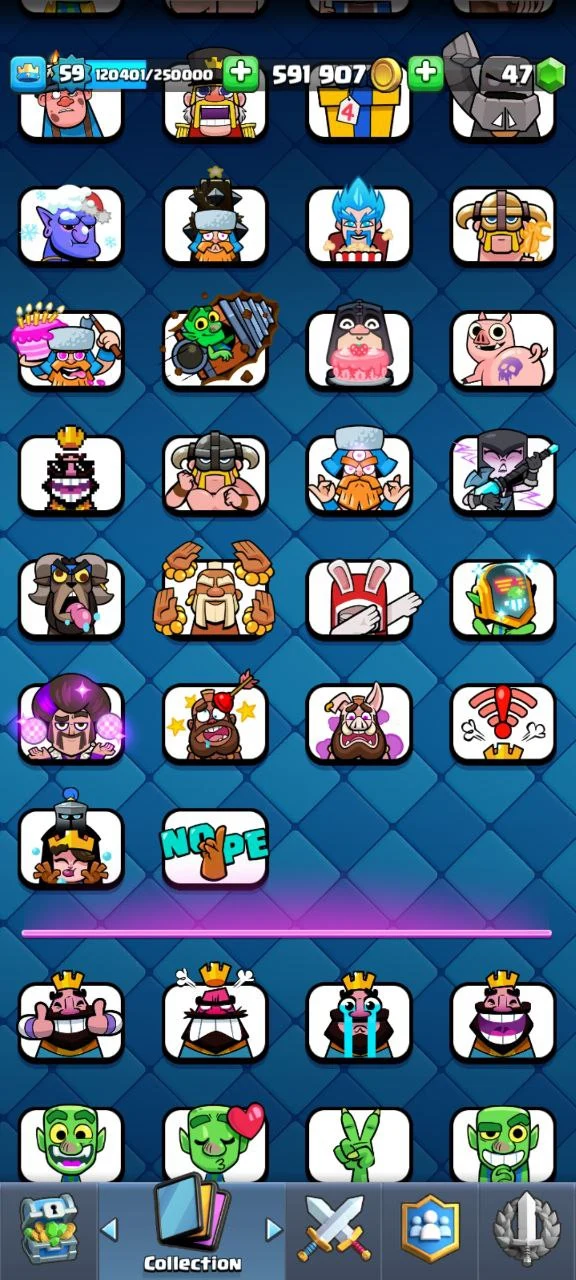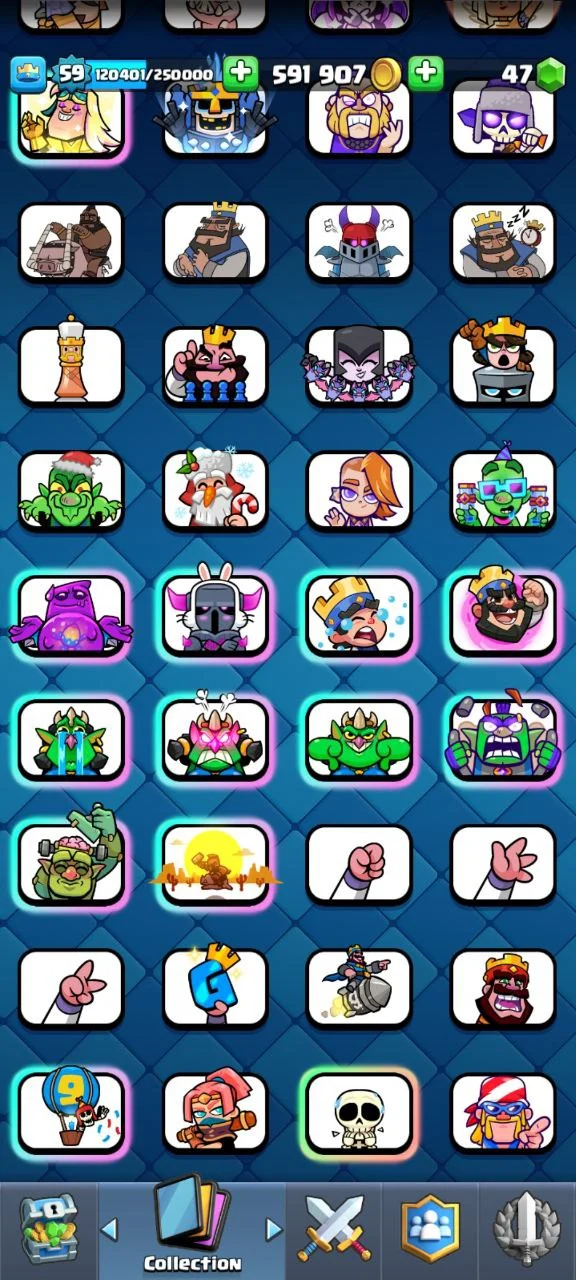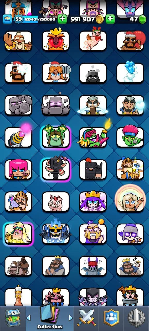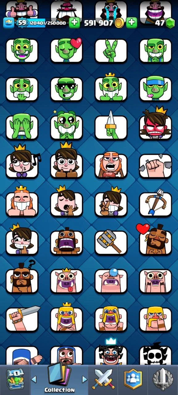 ✨️ 230 EMOTES 💎 97 MAXED CARDS 👑 9 YEAR OLD BADGE 📛 10 EVOLVED 😈 59 XP 🤯 11 TOWER SKINS 🌟 LAUGHING HOG EMOTE 🏅16 ELITE 💰GOLEM EMOTE 👑 GOBLIN EMOTES✨️ 10000 TROPHIES ✅
