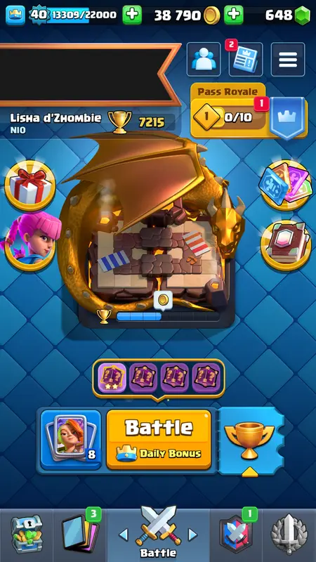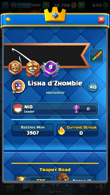 7215 TROPHY 🏆 13 KT 🚀 LVL 40 👑 117 CARDS 🍉 2 MAX CARDS 👑 0 ELITE CARDS ⚡ 21 EMOTE 🚀 EVO 2 🎭 #8UYUVC8V ⸱ TAG ACCOUNT ♥️