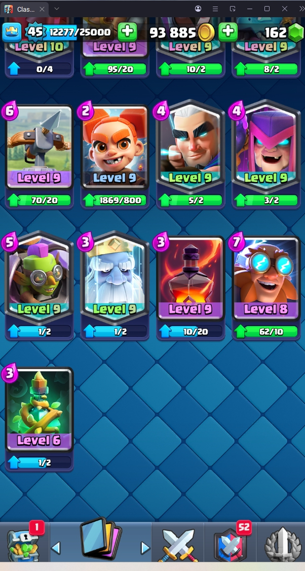 9270 TROPHY 🏆 45 LVL 💯 KT 14 👑 121 CARDS ♦️ 2 MAX CARDS 👑 2 ELITE CARDS  🔮 8 EVO 💯 EMOTE 51 🎭 #J8U98RGU8 ⸱ TAG ACCOUNT ♥️