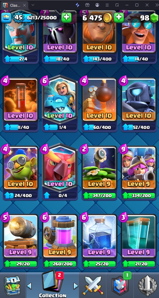9315 TROPHIES 🏆 45 LVL 💯 KT 14 👑 120 CARDS ♦️ 7 MAX CARDS 👑 2 ELITE CARDS 🔮 7 EVO 💎 EMOTE 47 🎭 #YG808CC28 ⸱ TAG ACCOUNT ⚙️ LEGENDARY ARENA • 9000 TROPHIES 💎