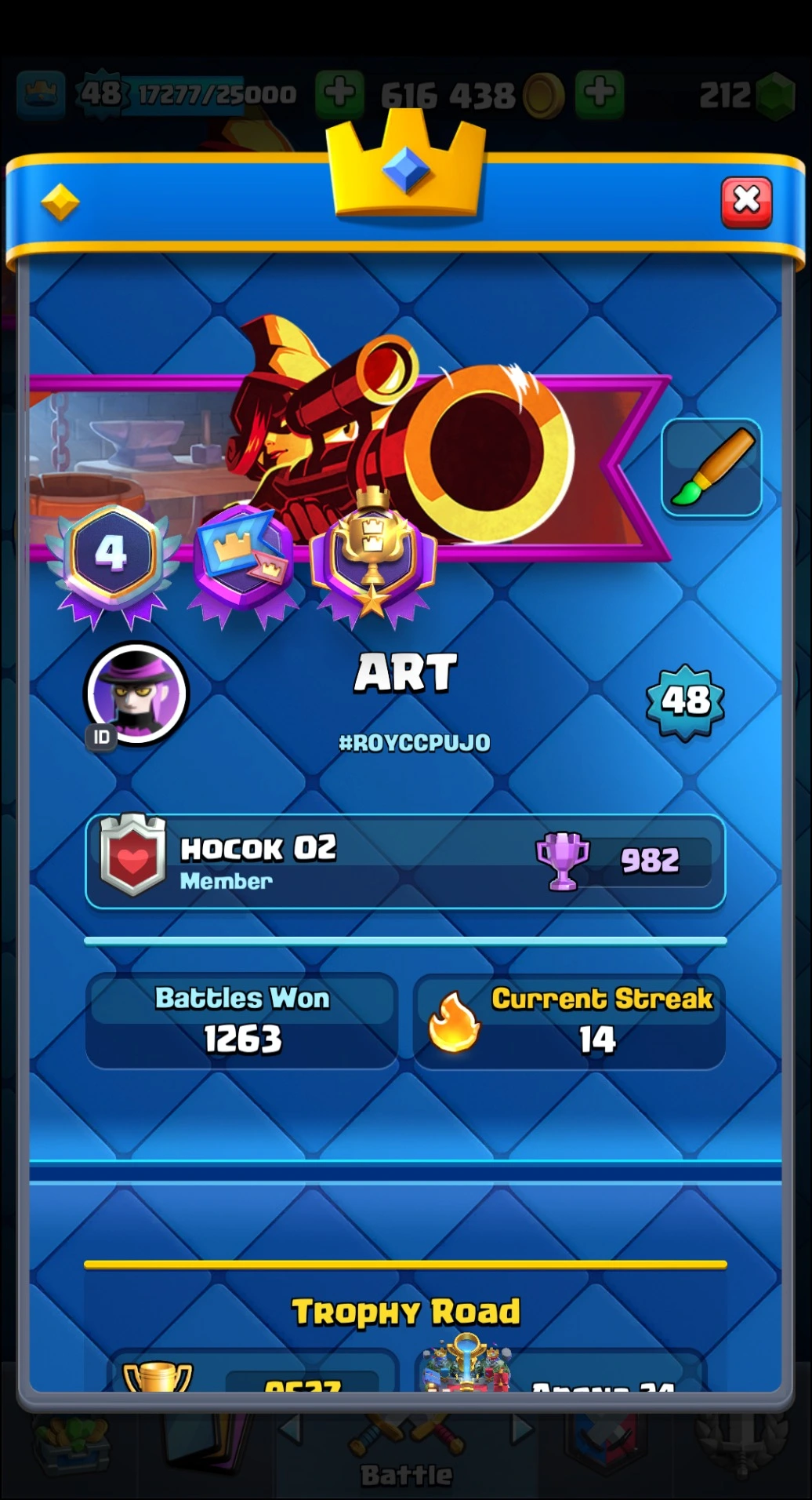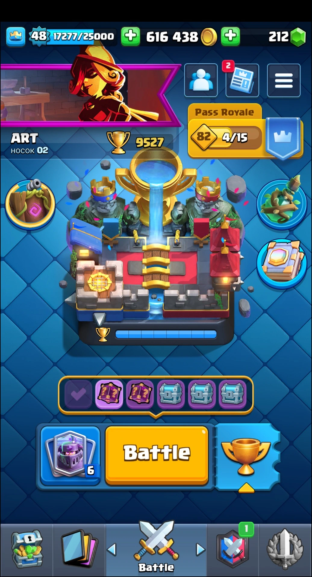 9500 TROPHY ⭐ 48 LVL ⭐ KT 14 ⭐ 120 CARDS ⭐ 5 MAX CARDS ⭐ 4 ELITE CARDS ⭐ 7 EVO ⭐ EMOTE 44 ⭐ #R0YCCPUJ0 ⸱ TAG ACCOUNT