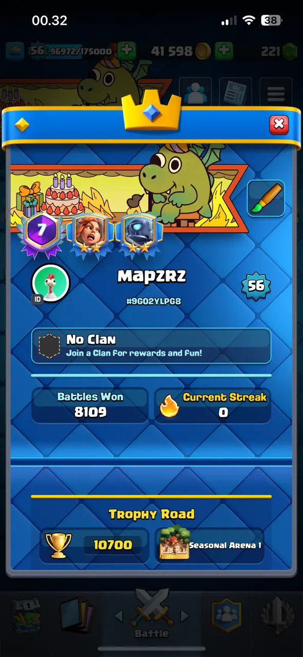 🔥 Amazing 🔥 CR Lv.56 🔥 7 Years Played 🔥 Seasonal Arena 1 🔥 10700 Trophies 🔥 KT 15 🔥 13 Evo Cards 🔥 55 Max Cards & 9 Elites 🔥 128 Emotes 🔥 13 Tower Skins 🔥 [F2797] 🔥
