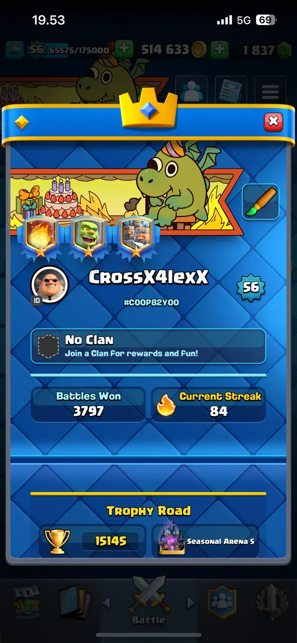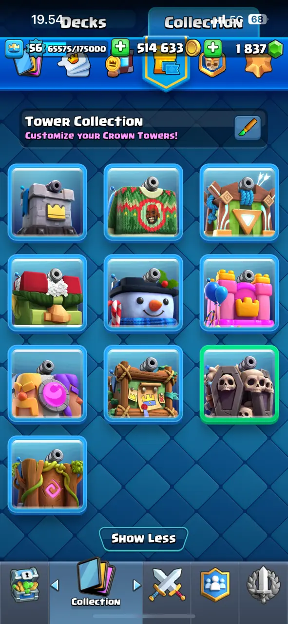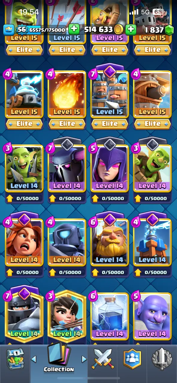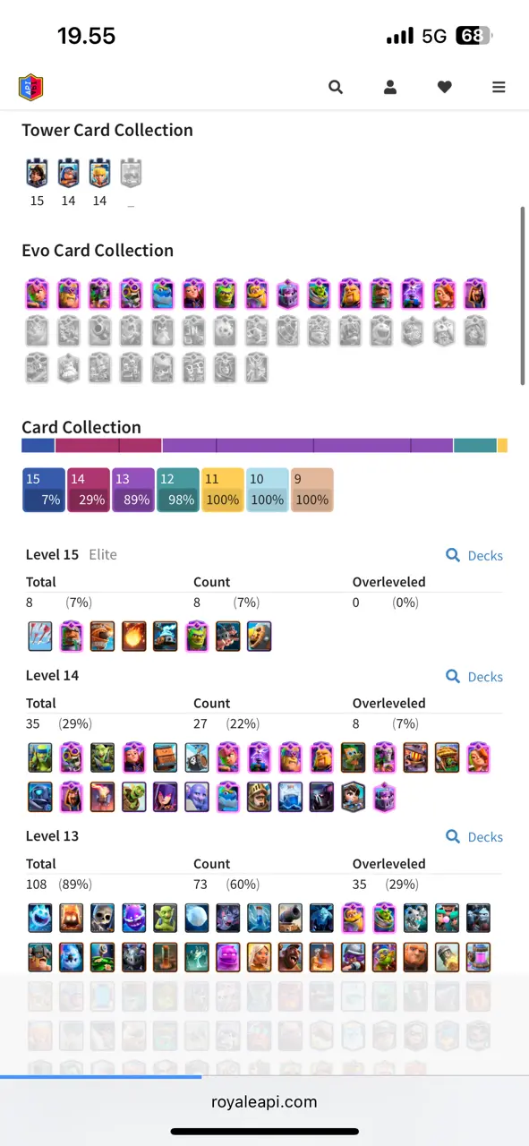 🔥 Awesome 🔥 CR Lv.56 🔥 Free Change Name 🔥 Seasonal Arena 5 🔥 15145 Trophies 🔥 KT 15 🔥 15 Evo Cards 🔥 35 Max Cards & 8 Elites 🔥 147 Emotes 🔥 10 Tower Skins 🔥 [F2687] 🔥
