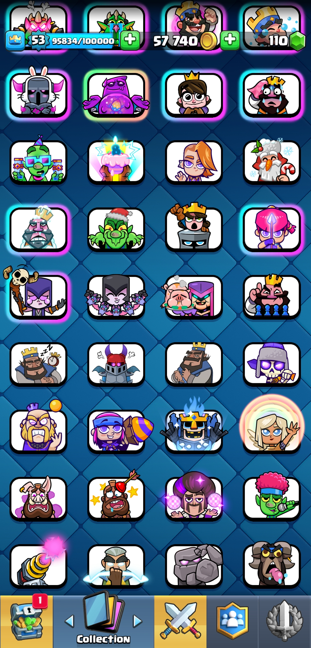 🧿 CHEAPEST 🧿 KT 14 💎10000+Trophies 🏆| 🌟39 Max cards & 10 Evolution 🌟 | Exp Level-53 🔥 | Arena Level- Seasonal 🎯 | ✨Rare emotes ✨| Instant delivery 🚚 co43