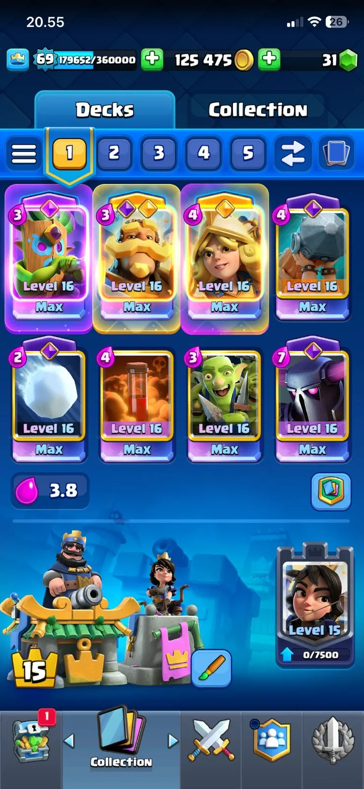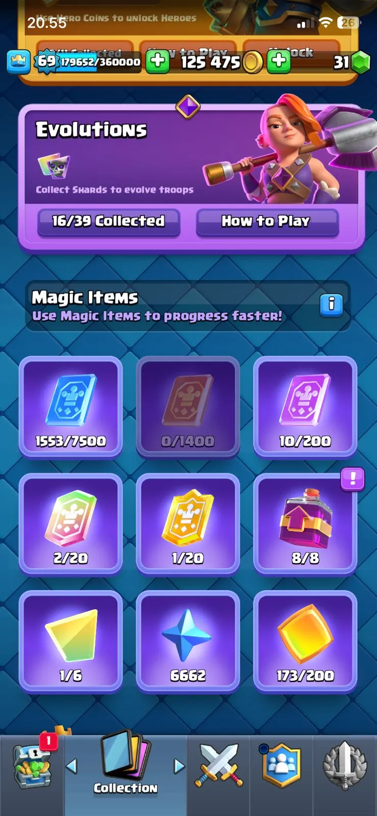 cheapest🔥ce lv 69🔥evo 16🔥arena 30🔥trophy 12676🔥skins tower 16🔥full access account🔥