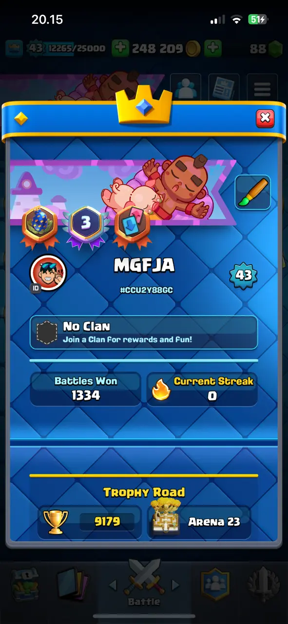 🔥 Combo CR+BS 17k Cups 🔥 CR Lv.43 🔥 Arena 23 🔥 9179 Trophies 🔥 KT 14 🔥 12 Evo Cards 🔥 3 Max Cards & 2 Elites 🔥 51 Emotes 🔥 7 Tower Skins 🔥 [F2744] 🔥