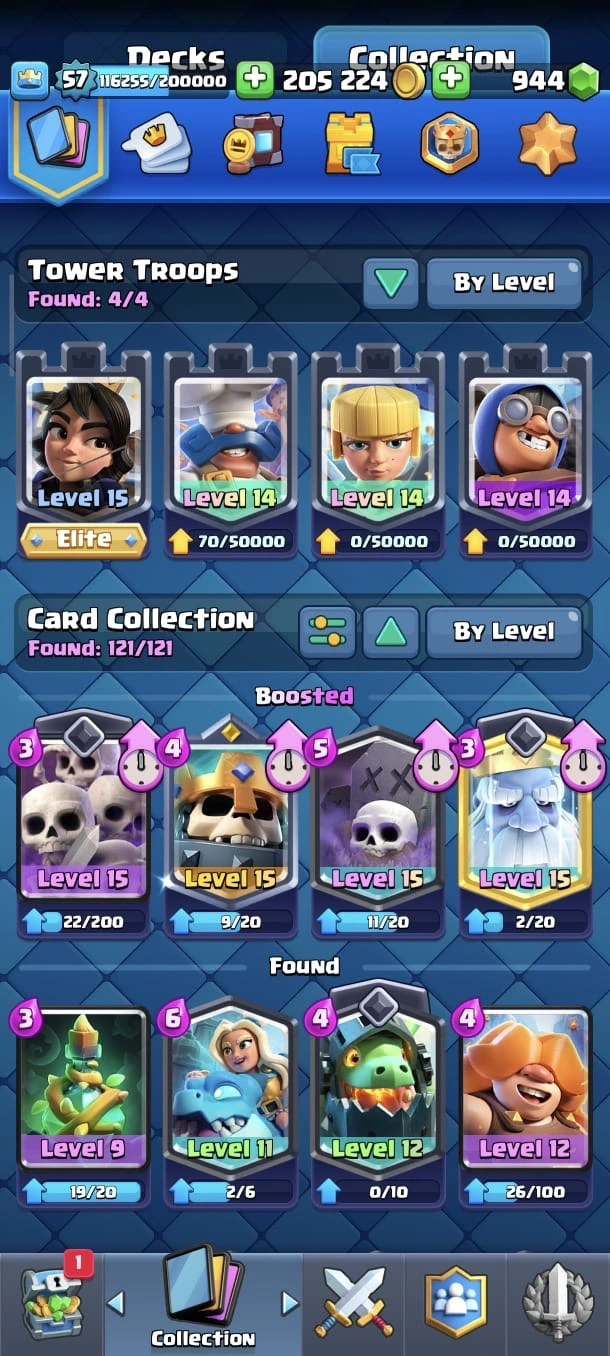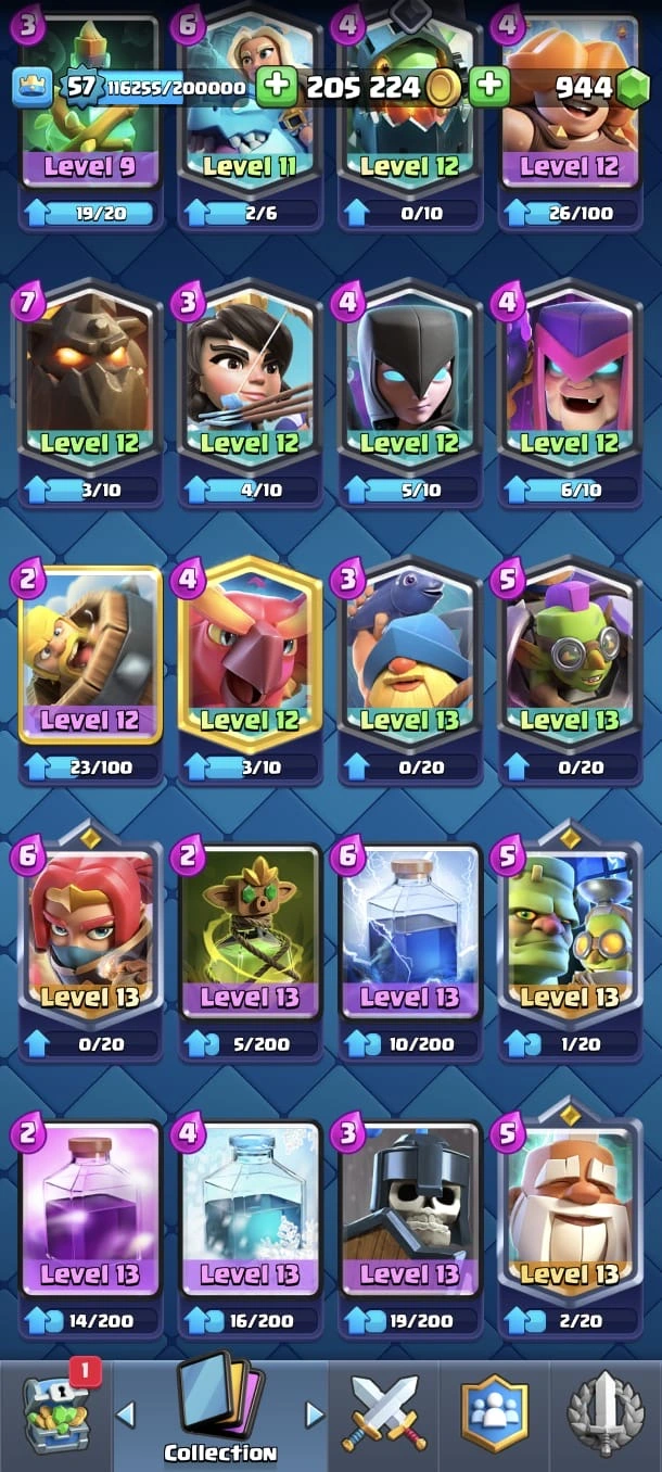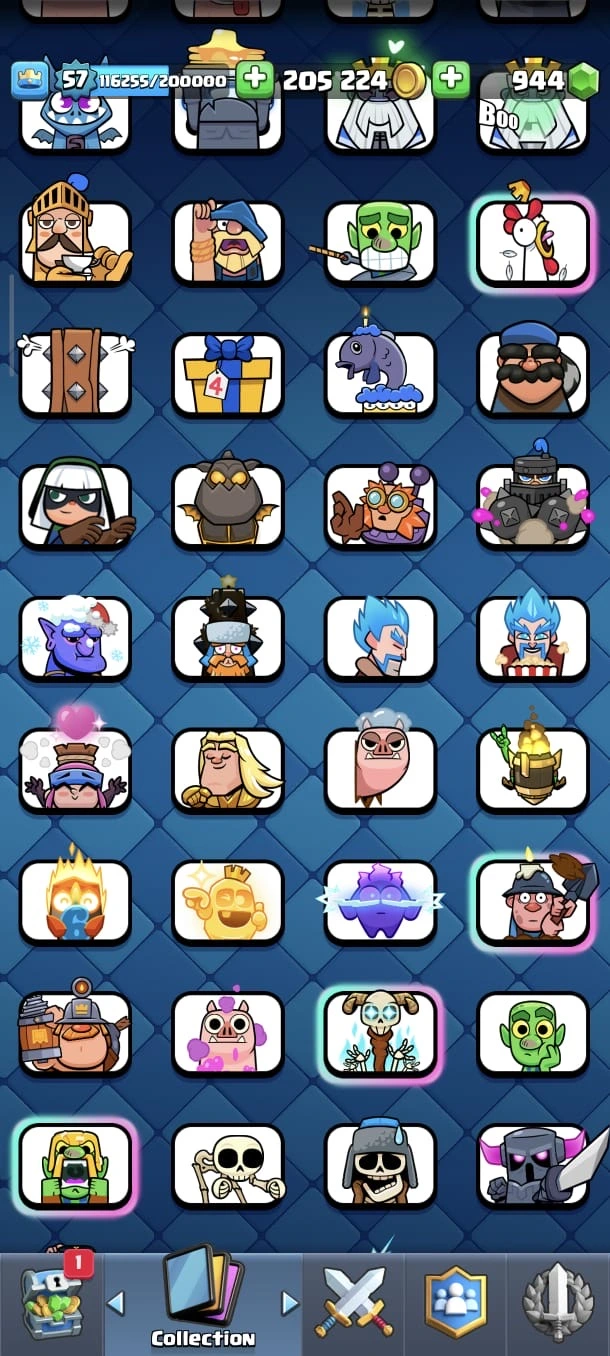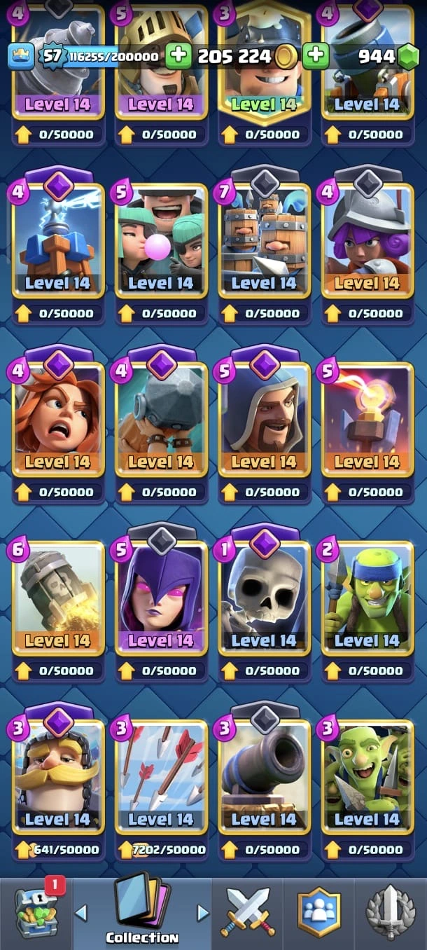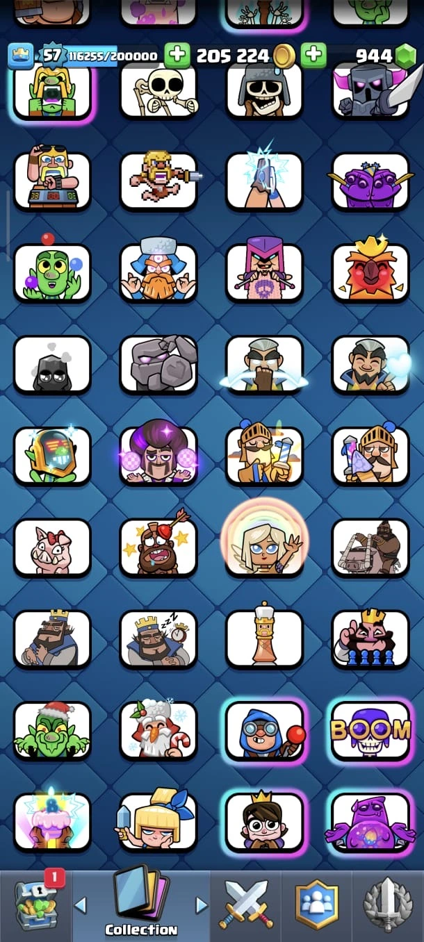 CR LV 57 🔥 Max Cards 54 🔥 Evo 18 🔥 Elite 11 🔥 Emote 140 🔥 Trophy 12345 🔥 Change name on 🔥 Cheap & Safe account🔥