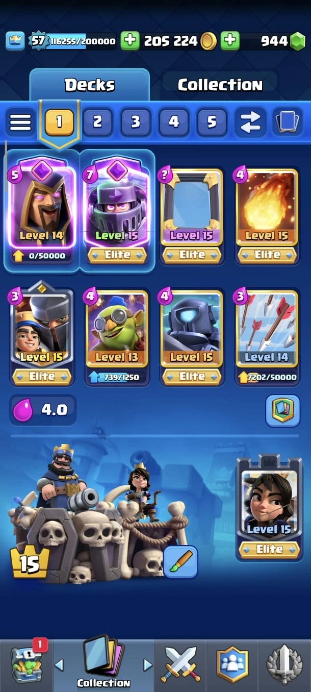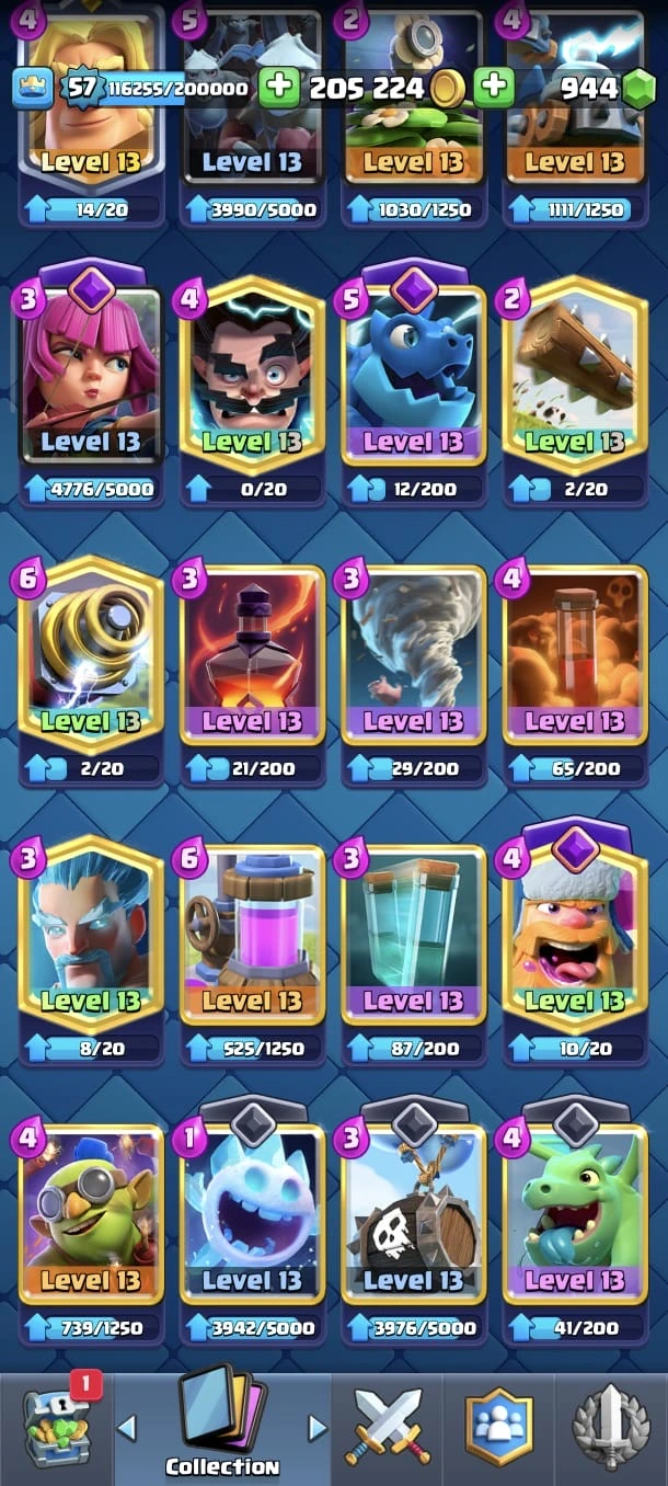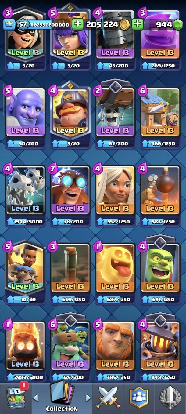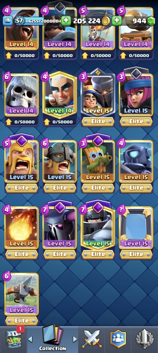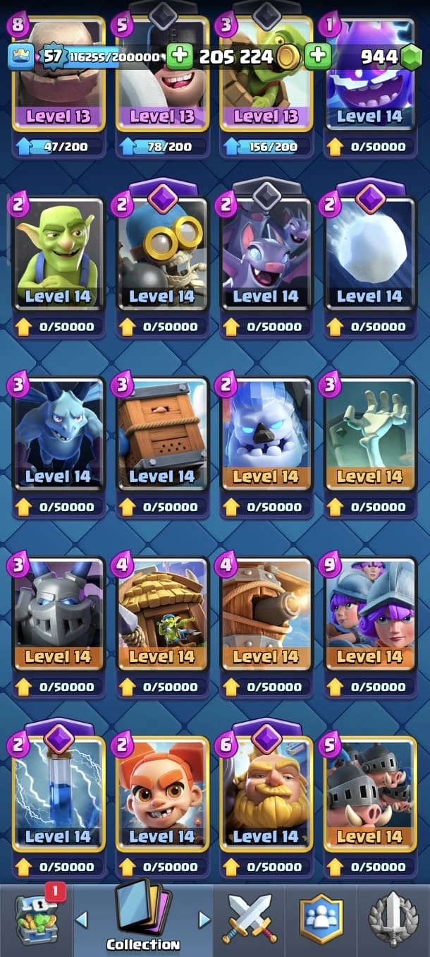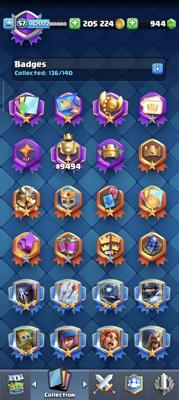 CR LV 57 🔥 Max Cards 54 🔥 Evo 18 🔥 Elite 11 🔥 Emote 140 🔥 Trophy 12345 🔥 Change name on 🔥 Cheap & Safe account🔥