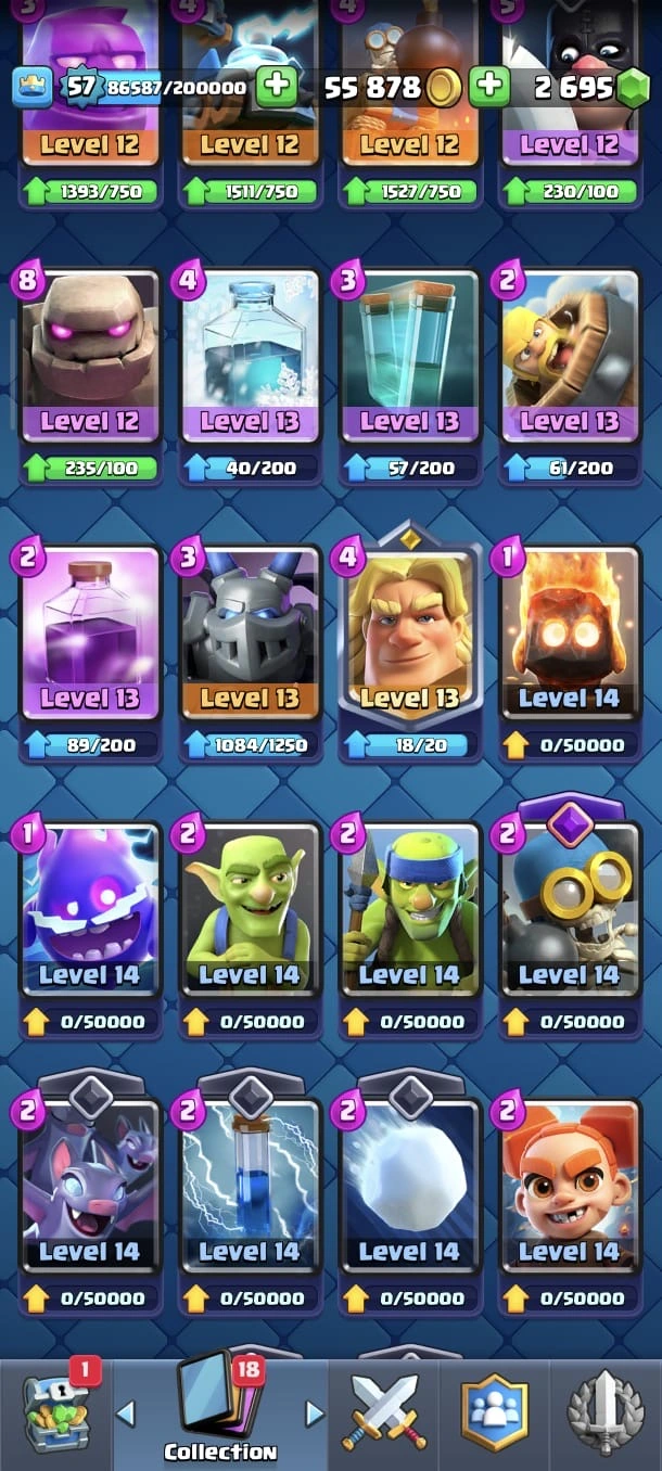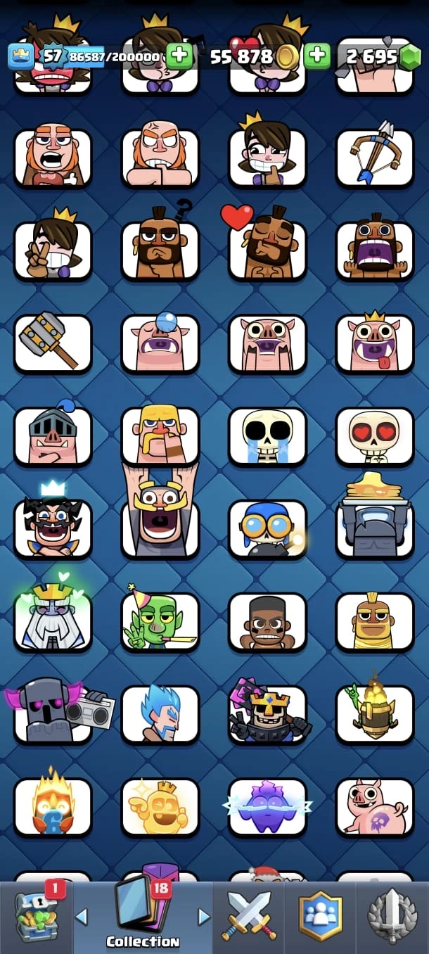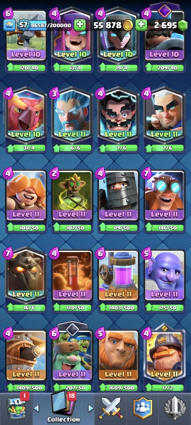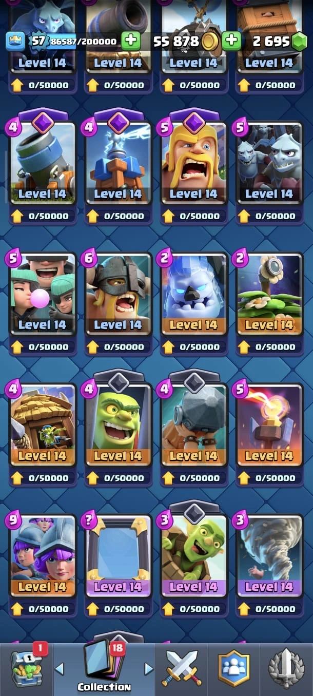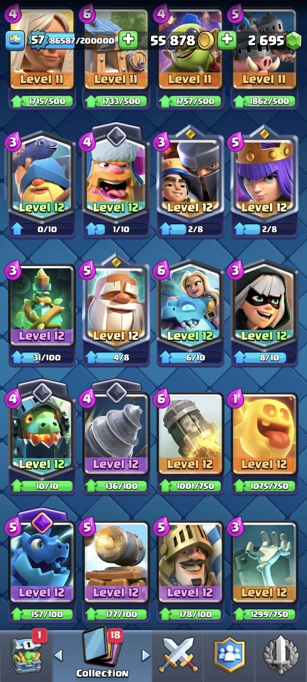 CR LV 57 🔥 Max Cards 66 🔥 Evo 19 🔥 Elite 12 🔥 Emote 131 🔥 Trophy 12600 🔥 Change name free 🔥 Cheap 🔥