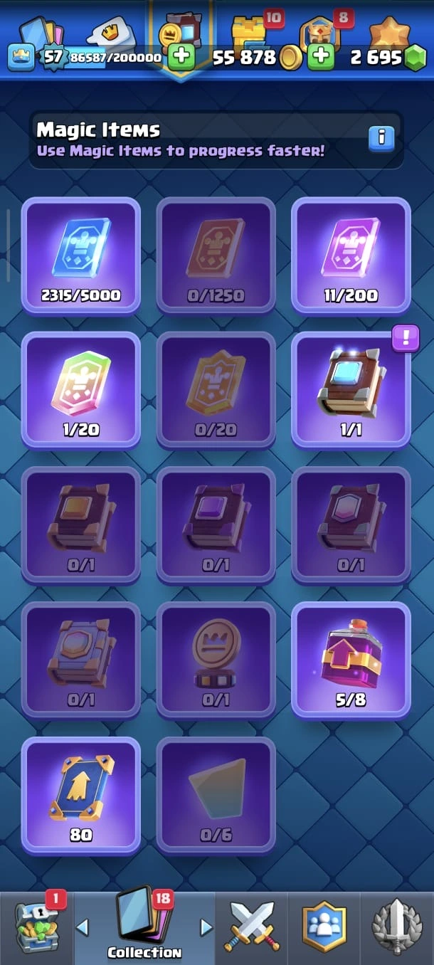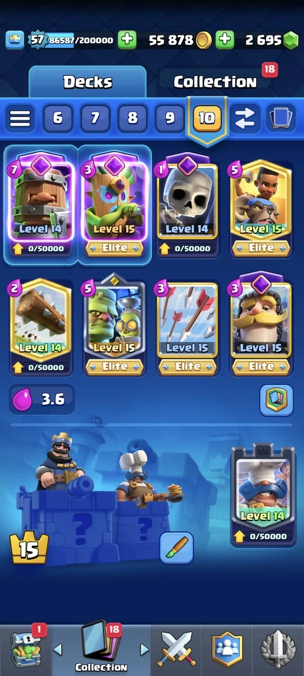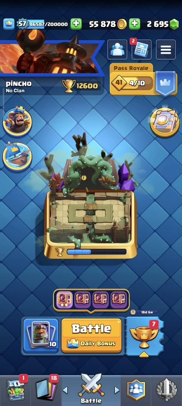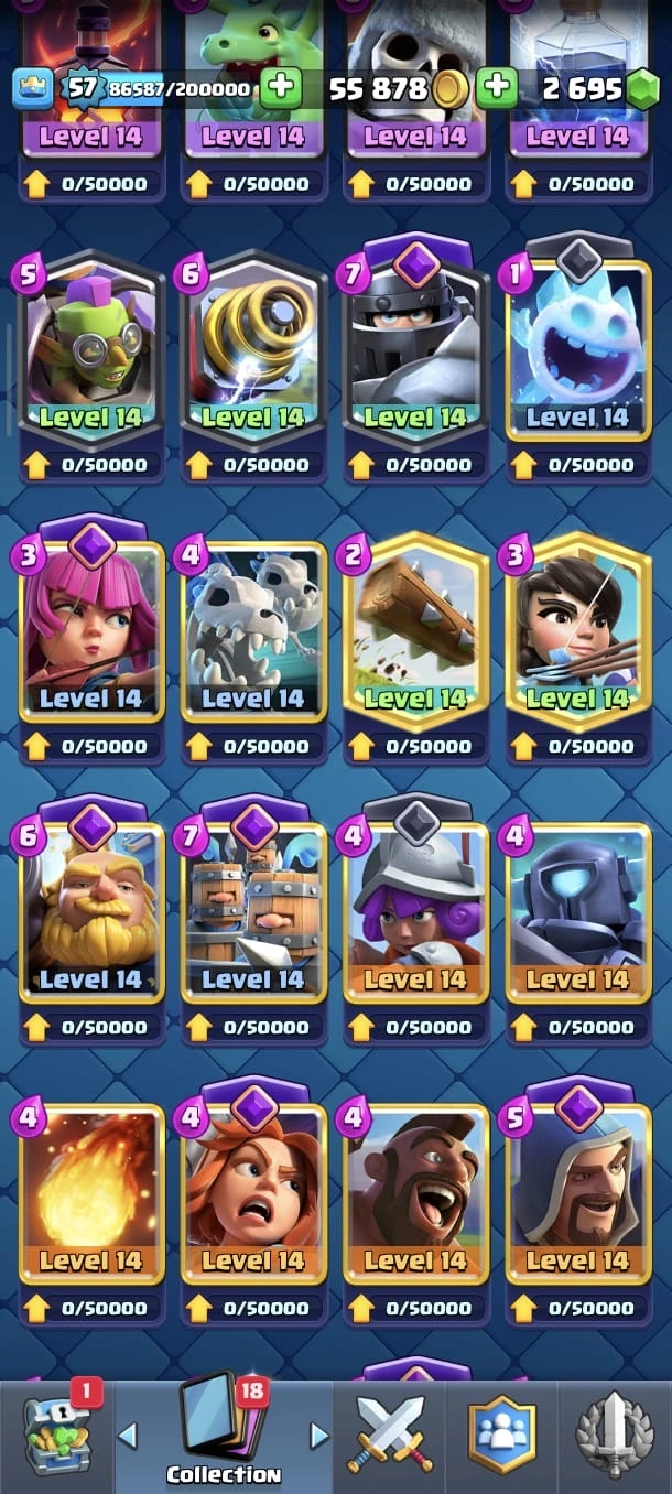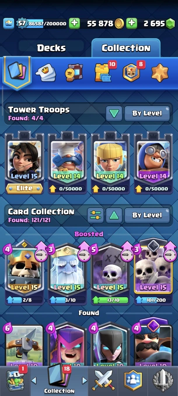 CR LV 57 🔥 Max Cards 66 🔥 Evo 19 🔥 Elite 12 🔥 Emote 131 🔥 Trophy 12600 🔥 Change name free 🔥 Cheap 🔥