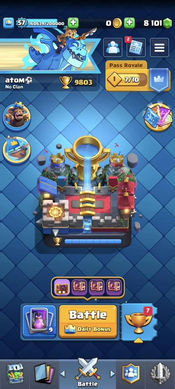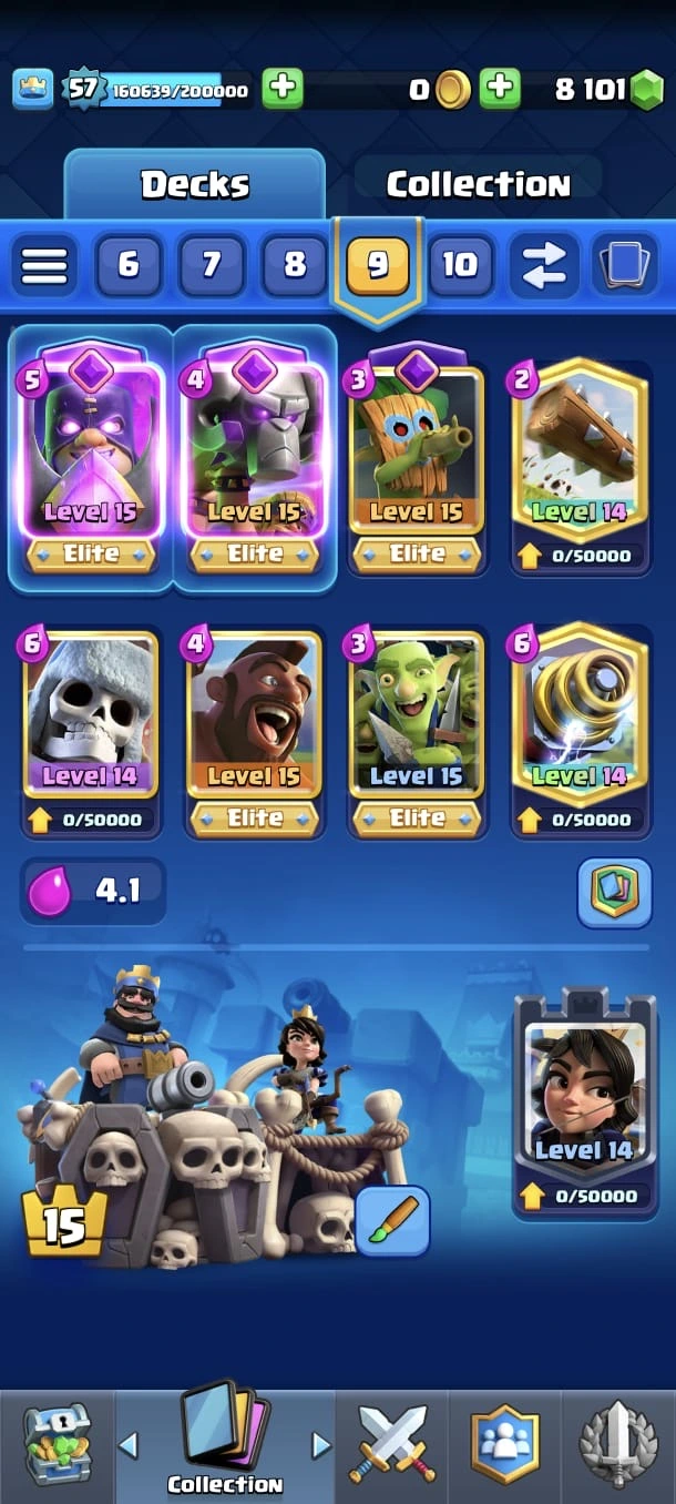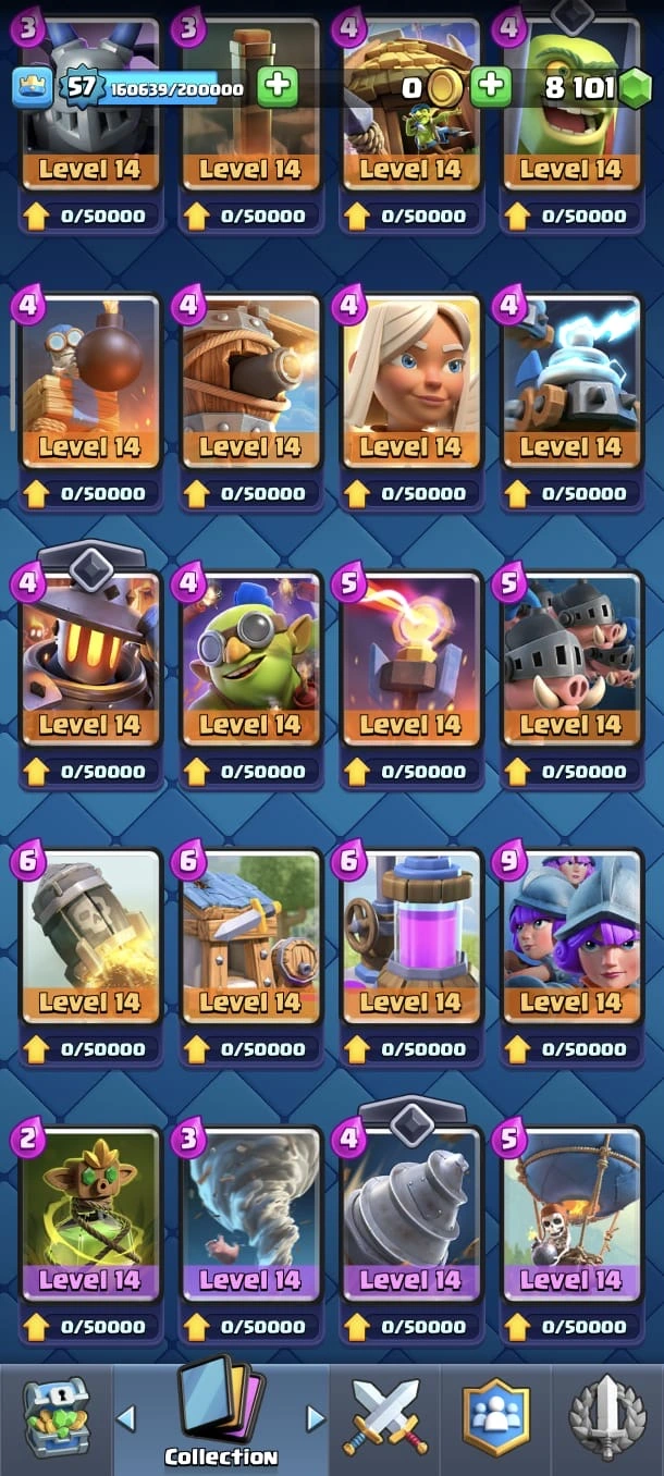 CR LV 57 🔥 Max Cards 83 🔥 Evo 19 🔥 Elite 11 🔥 Trophy 9803 🔥 Gems 8k + 🔥 Change name on🔥 Best price 🔥
