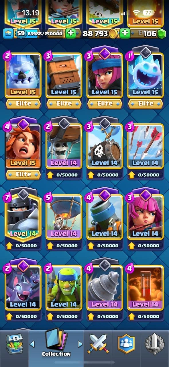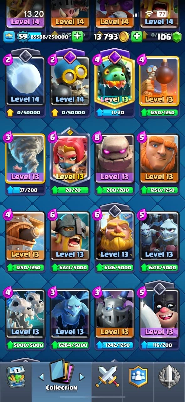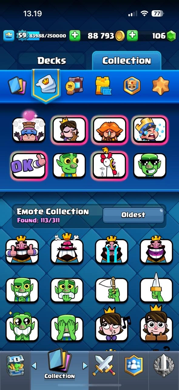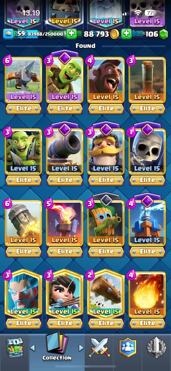 CR XP 59🔥KT15🔥21 Elite🔥56 Max Card🔥16 Evo🔥113 Emotes🔥10 Skins Tower🔥13500🔥Acces Full🔥Cheapest and safe Account