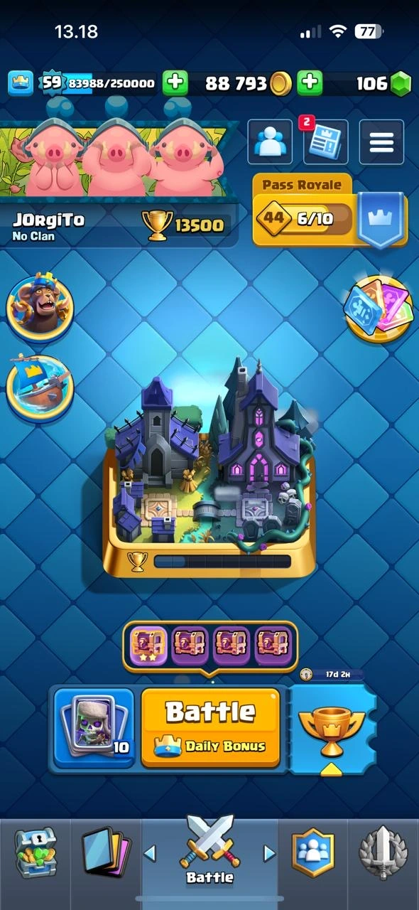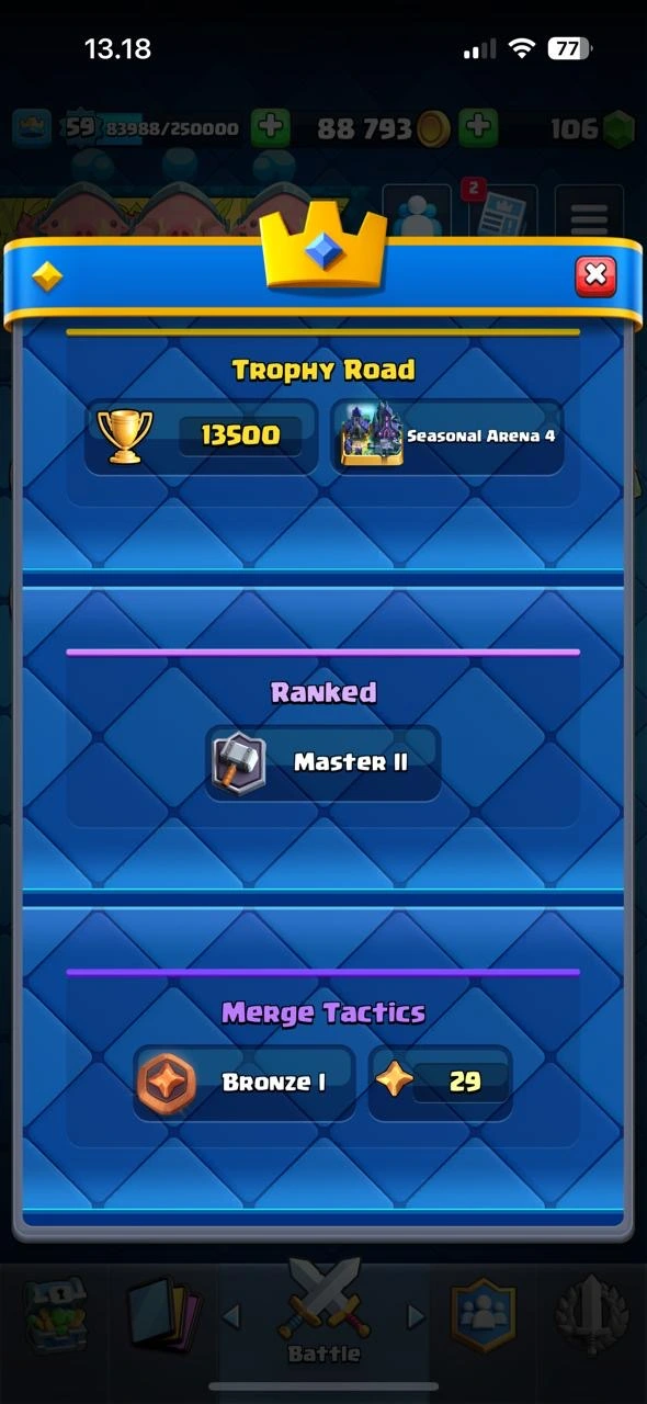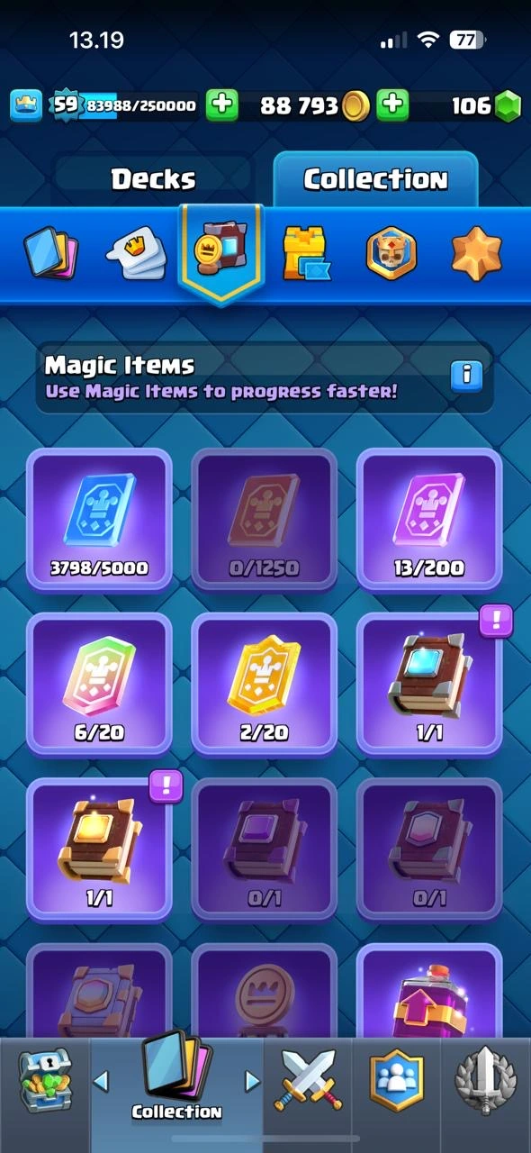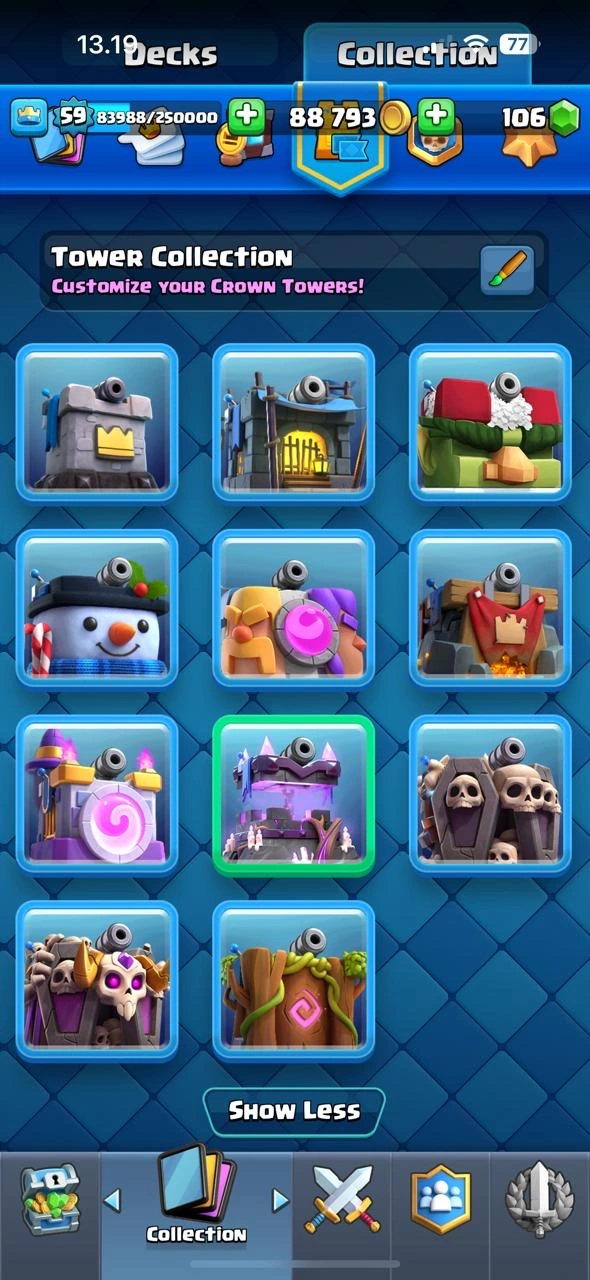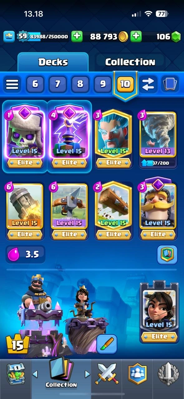 CR XP 59🔥KT15🔥21 Elite🔥56 Max Card🔥16 Evo🔥113 Emotes🔥10 Skins Tower🔥13500🔥Acces Full🔥Cheapest and safe Account