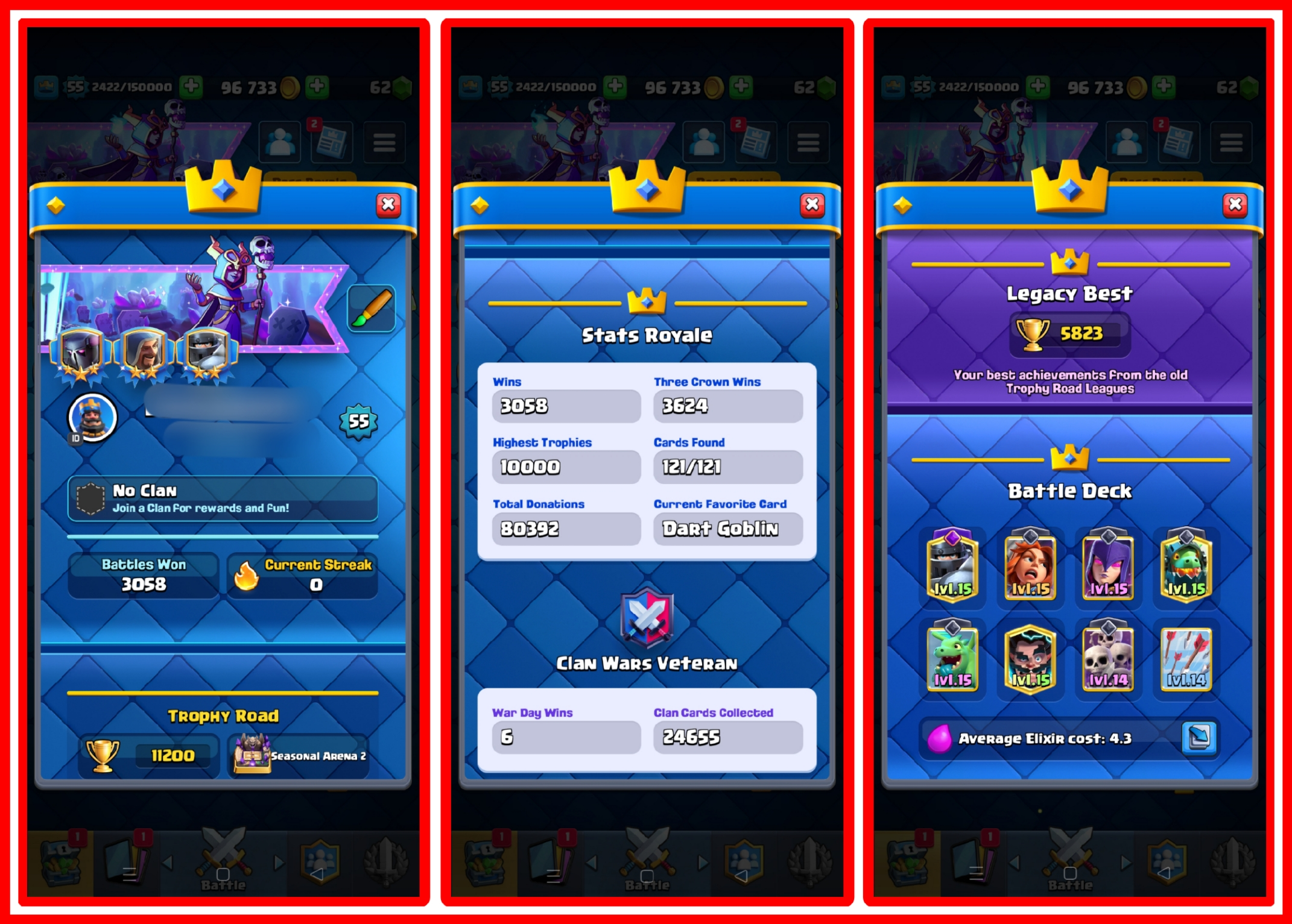 [DISCOUNTED DEAL] 🎁 33 MAX CARDS  🎁 LEVEL 55 😍 11,200 TROPHIES 🏆 SEASONAL ARENA LEVEL 2 💖 KT LEVEL 15 ☠️ 6 EVOLUTION CARDS 😍 6 ELITE CARDS 😍  NAME CHANGE 500 GEMS 💎 CHEAP PRICE 💸 INSTANT DELIVERY 💯 ANDROID & IOS ☑️