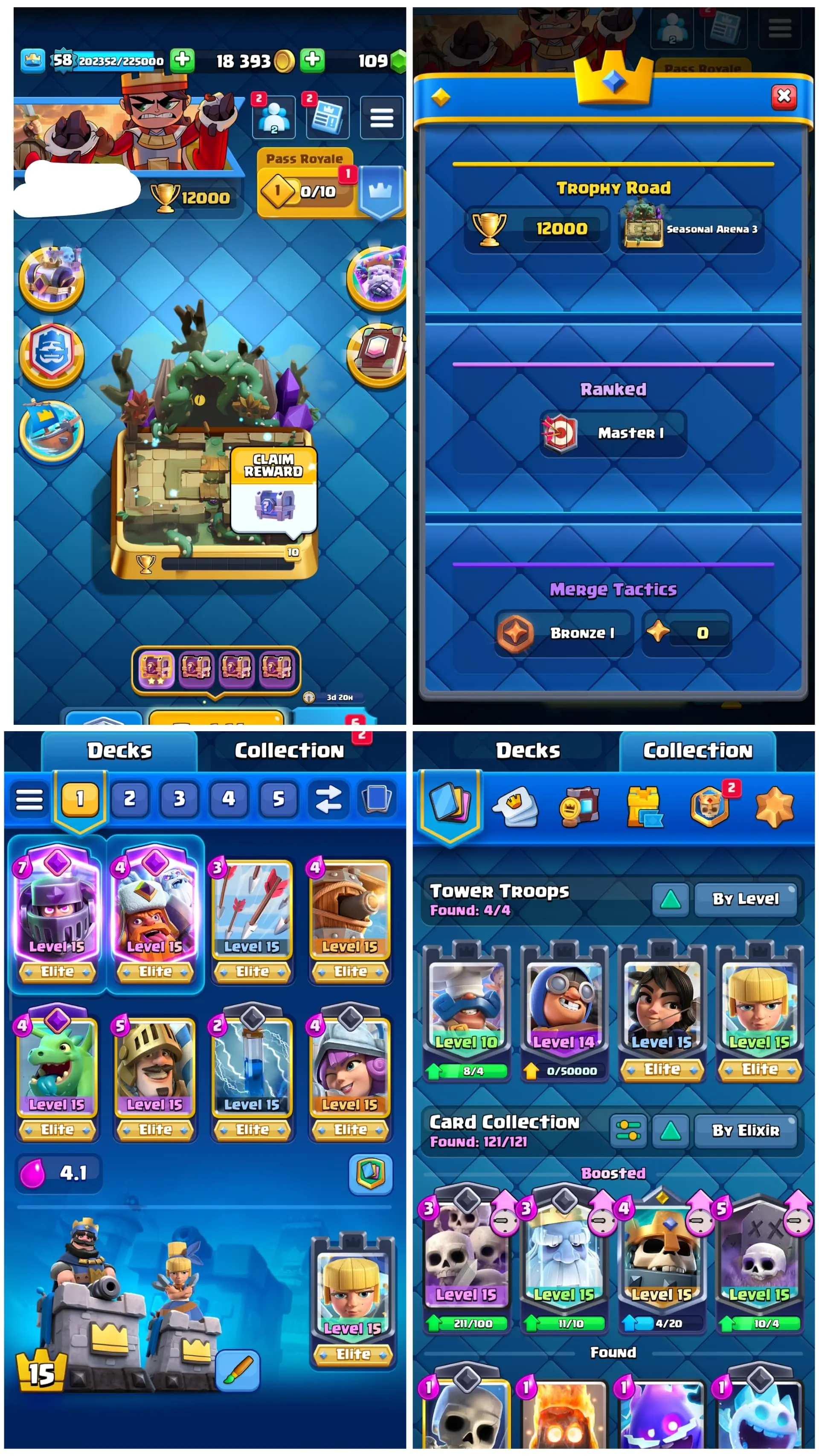 KT15 | 12000 TROPHIES | LVL 58 | 50 MAX CARDS | 19 ELITE CARDS | 18 EVO CARDS | 136 EMOTES | SEASONAL ARENA 3 | INSTANT DELIVERY