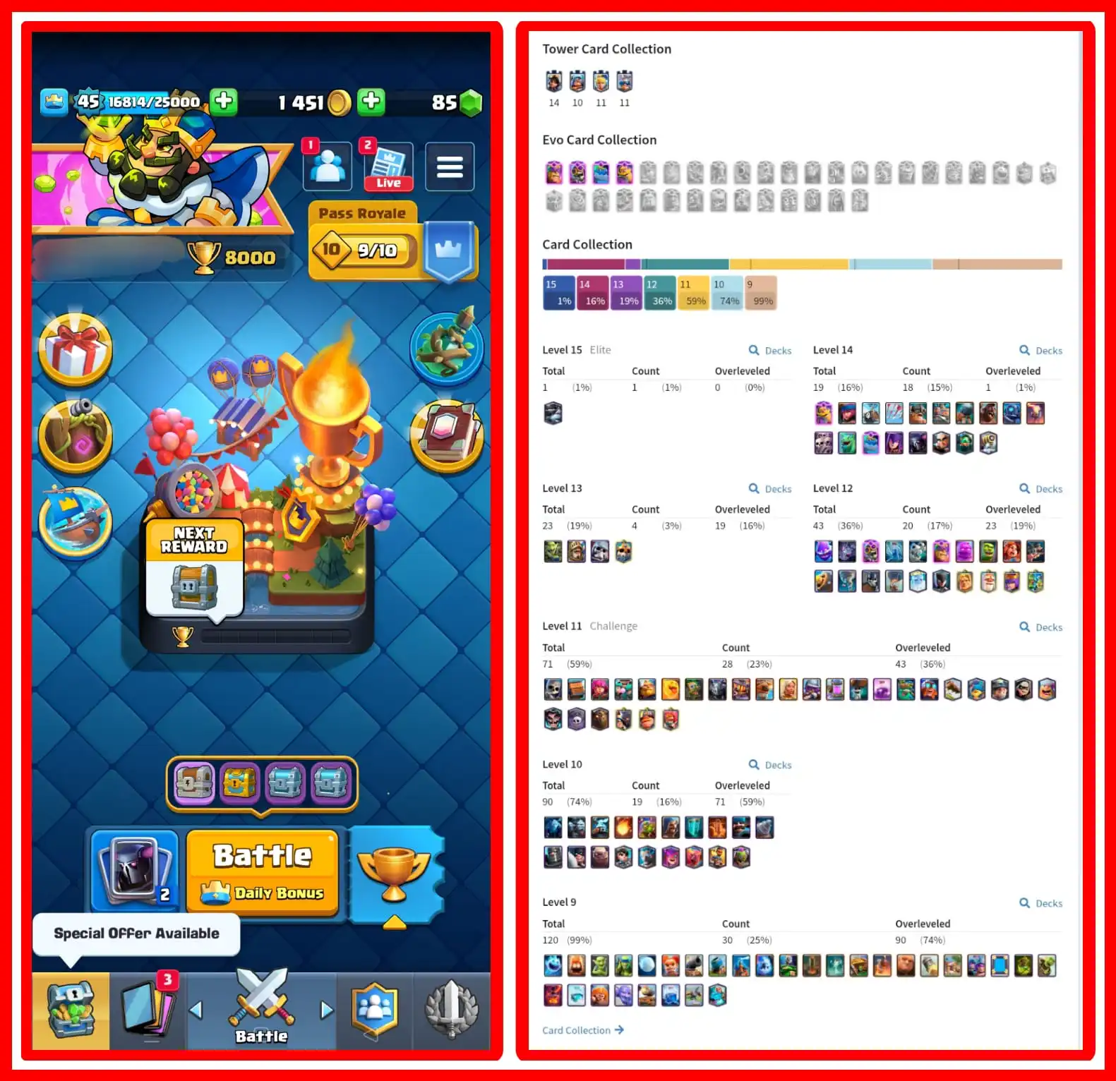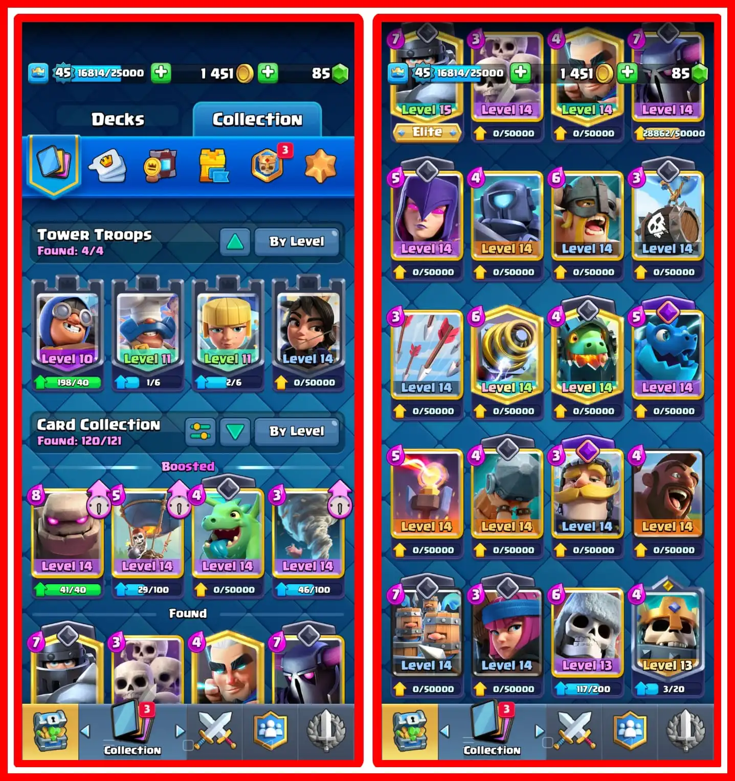LEVEL 45 🚀😍 8000 TROPHIES 🏆 ARENA LEVEL 21 ❤ KT LEVEL 14 ☠ 4 EVOLUTION CARDS 🤩 1 ELITE CARDS 😍 19 MAX CARDS ☠🎁 NAME CHANGE 500 GEMS 💎☠ CHEAP PRICE 💸 INSTANT DELIVERY ☑💯 ANDROID & IOS ☑🤝