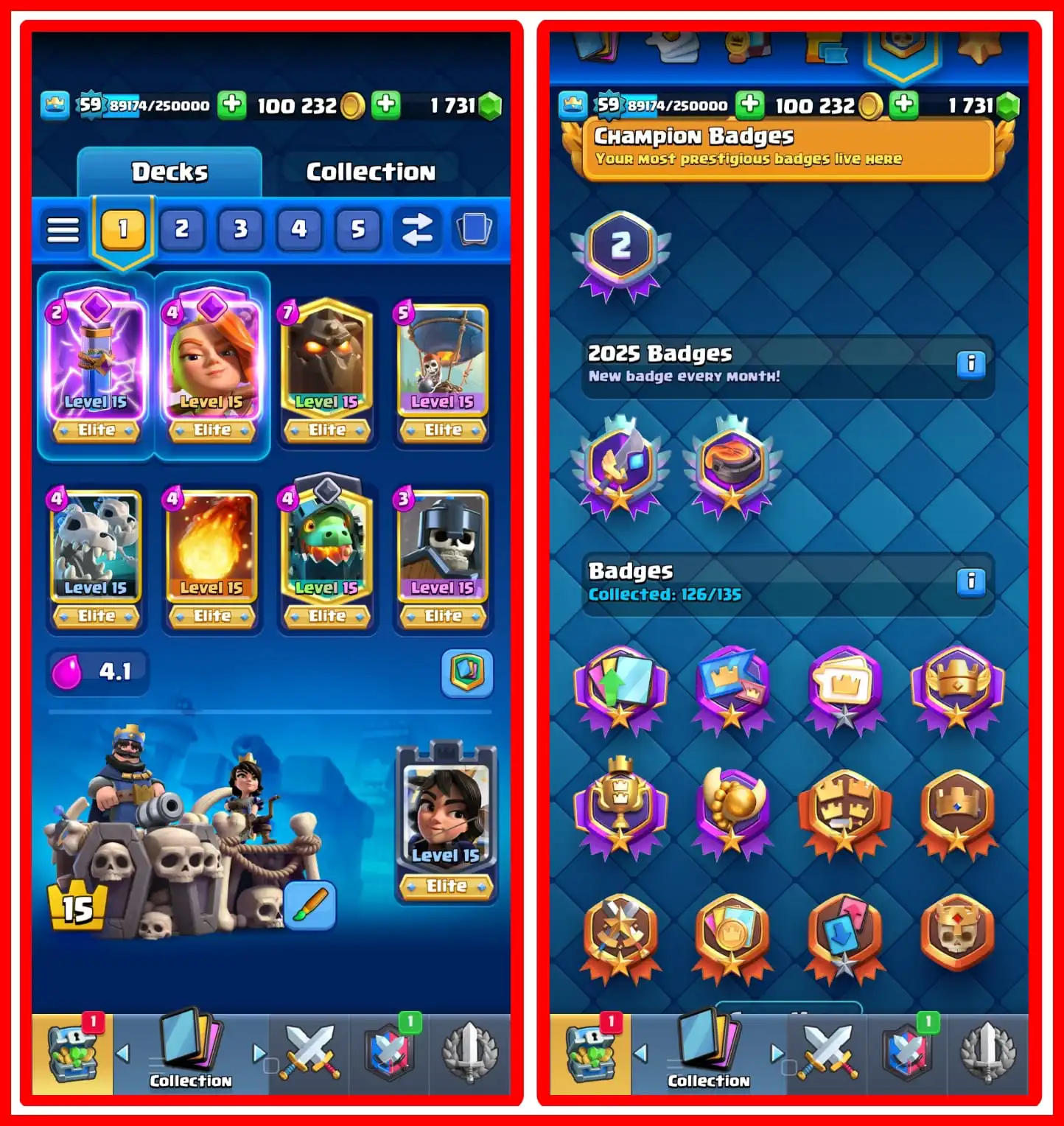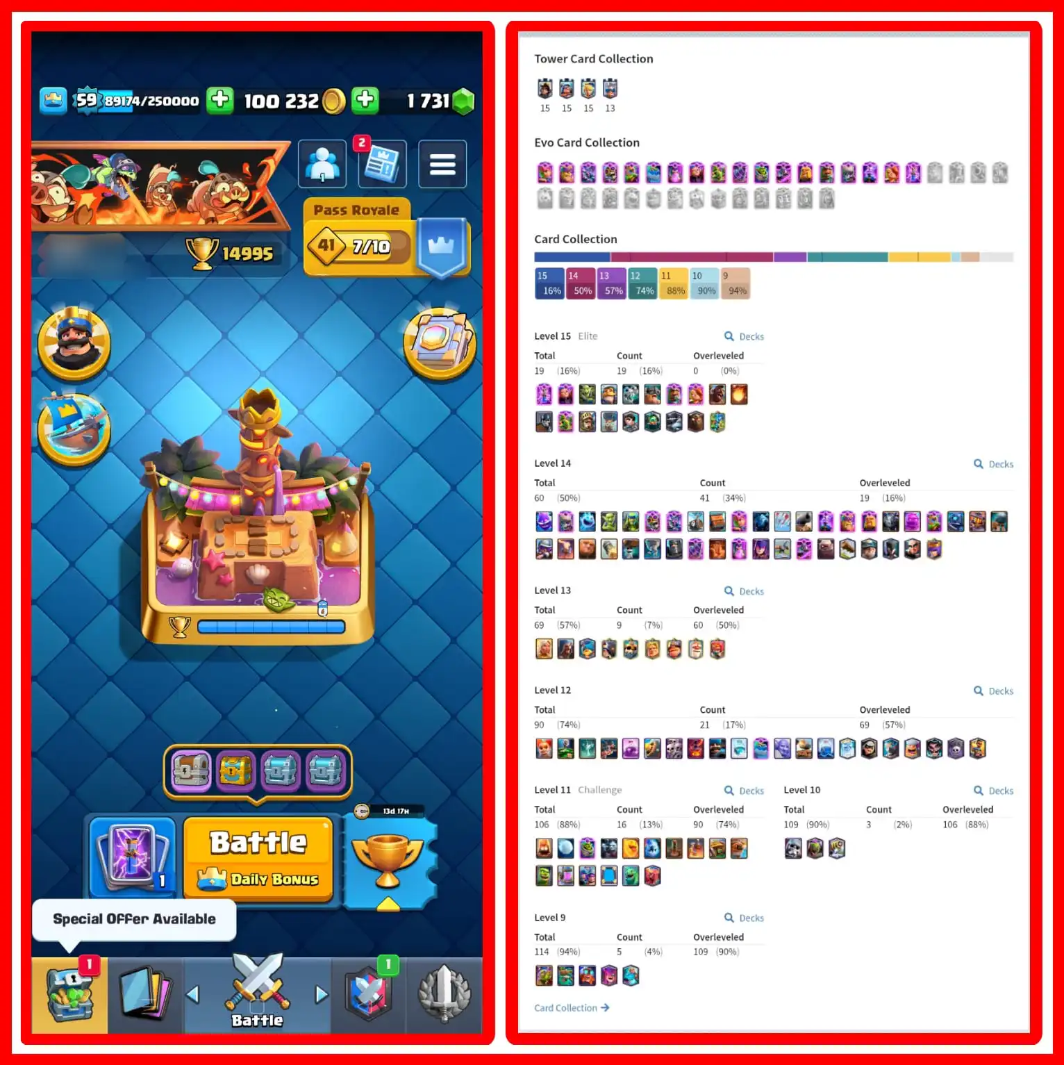 LEVEL 59 🚀😍 14995 TROPHIES 🏆 SEASONAL ARENA LEVEL 4 ❤ KT LEVEL 15 ☠ 18 EVOLUTION CARDS 🤩 19 ELITE CARDS 😍 60 MAX CARDS ☠🎁 FREE NAME CHANGE 💎☠ CHEAP PRICE 💸 INSTANT DELIVERY ☑💯 ANDROID & IOS ☑🤝