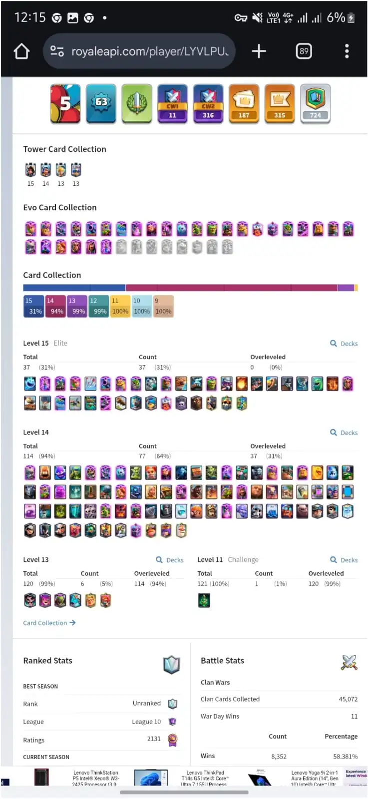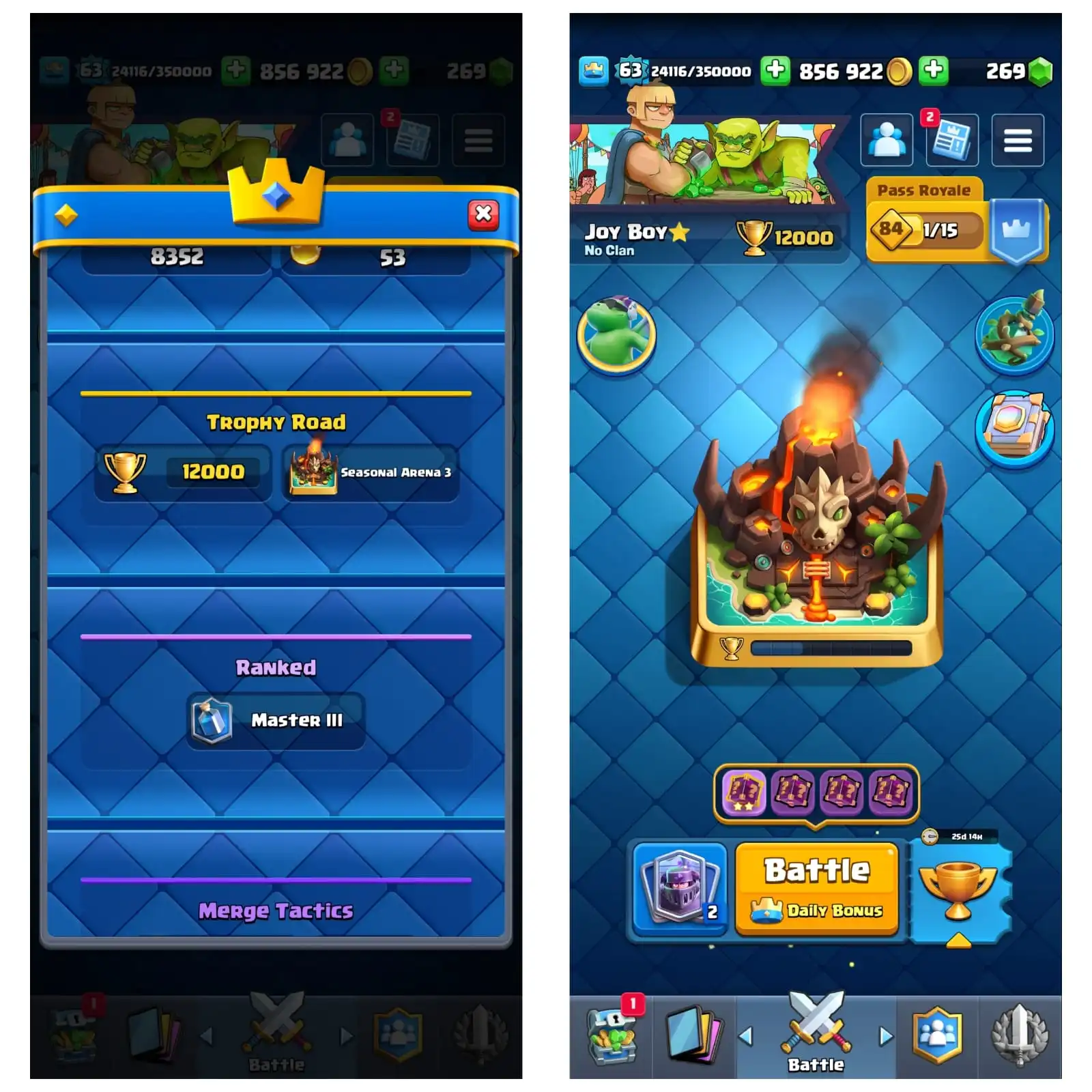 Lvl-63 | 116-Card Max | 38-Elite | 28-Evo | [187-Emote] | 12000 Trophy | Name Chang Free