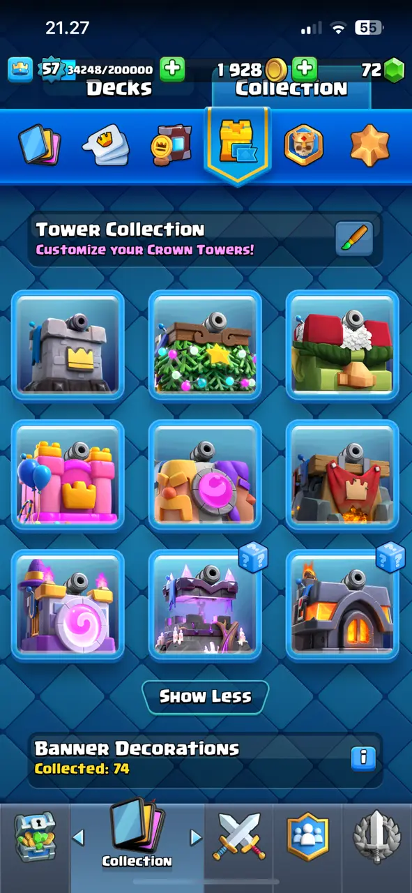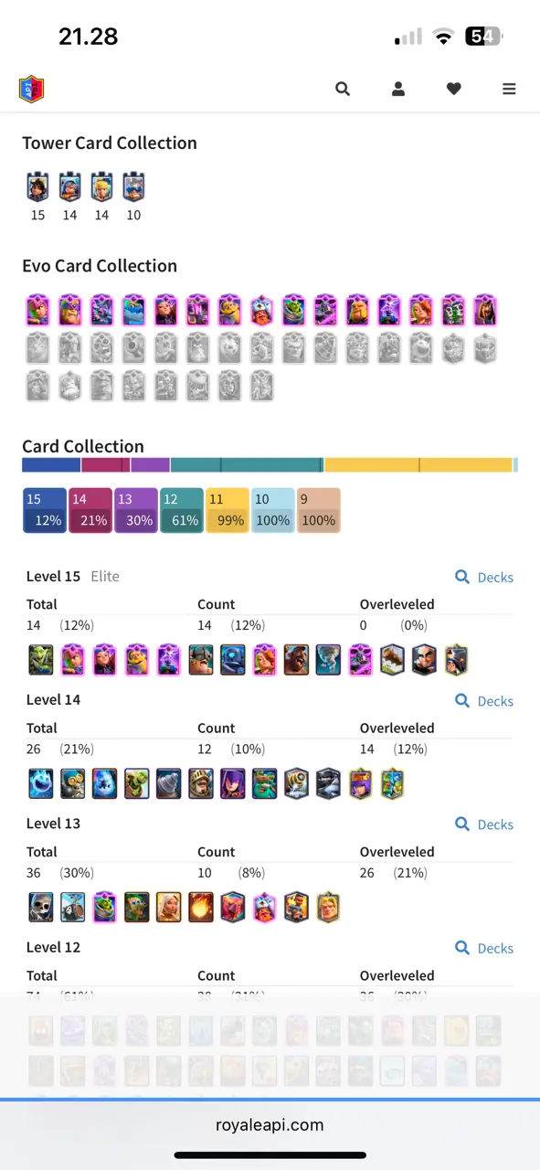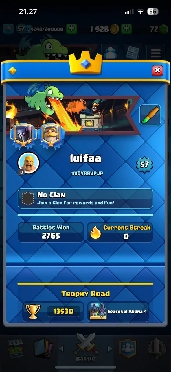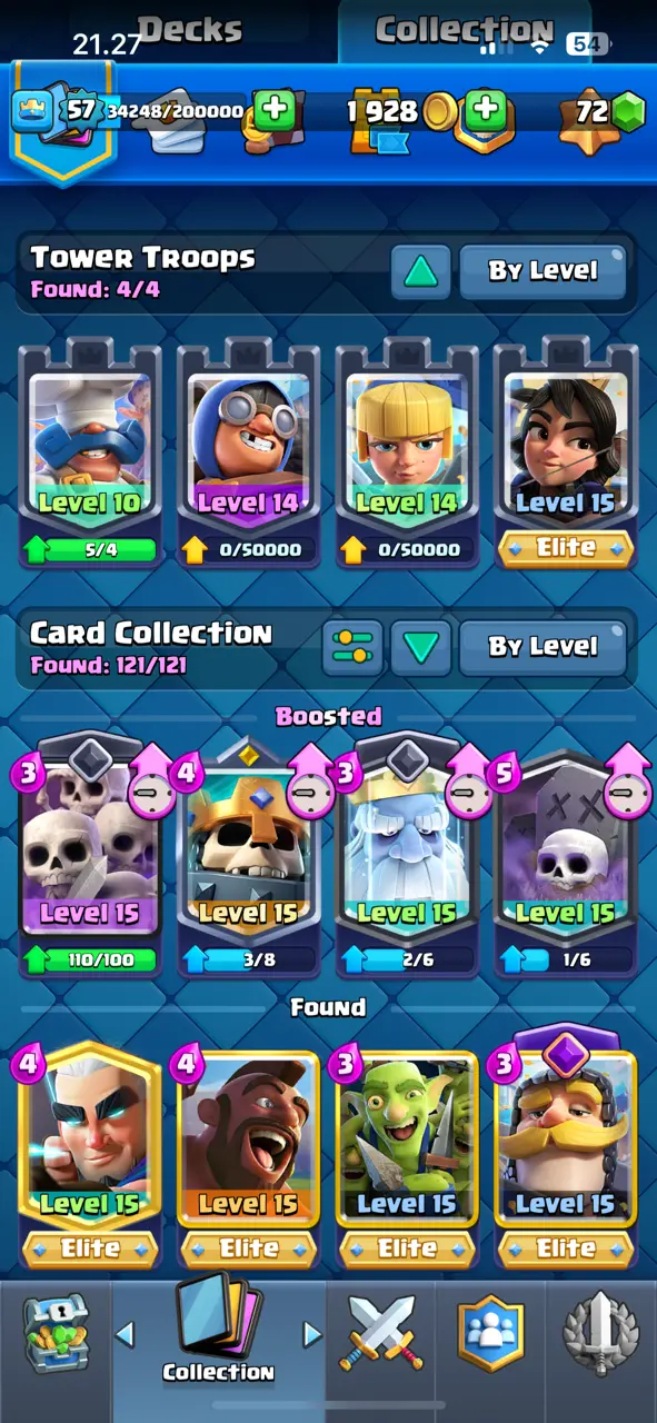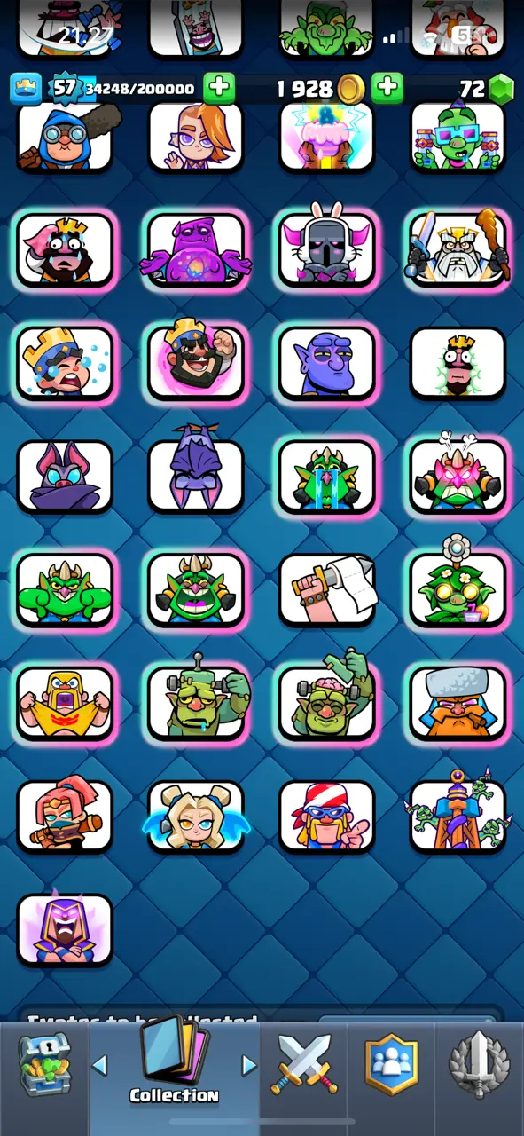 🔥 RAREST 🔥 CR Lv.57 🔥 Free Change Name 🔥 Seasonal Arena 4 🔥 13530 Trophies 🔥 KT 15 🔥 15 Evo Cards 🔥 26 Max Cards & 14 Elites 🔥 95 Emotes 🔥 9 Tower Skins 🔥 [F2670] 🔥