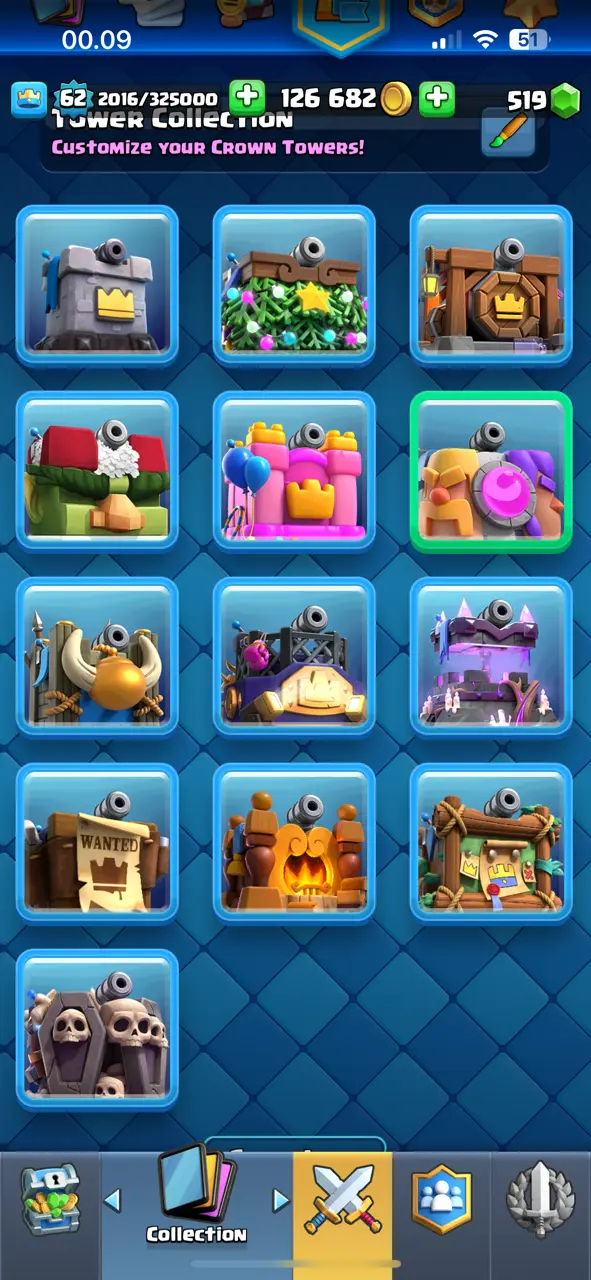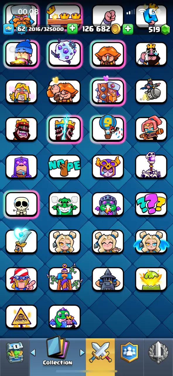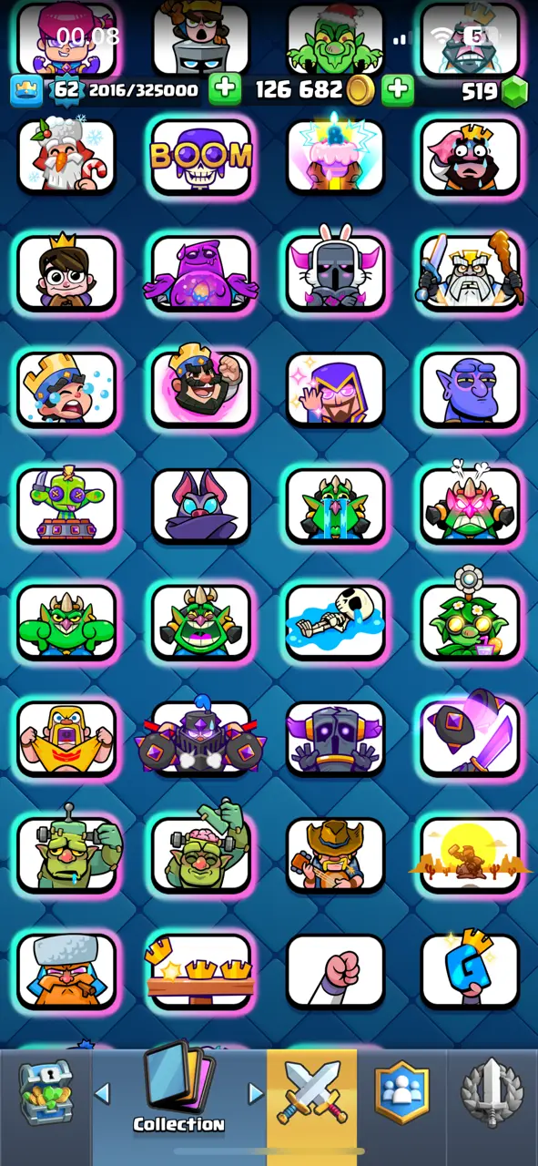 🔥 RAREST 🔥 CR Lv.62 🔥 Seasonal Arena 1 🔥 10000 Trophies 🔥 KT 15 🔥 20 Evo Cards 🔥 70 Max Cards & 34 Elites 🔥 150 Emotes 🔥 13 Tower Skins 🔥 [F2794] 🔥
