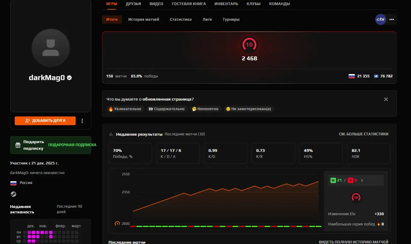🖤 FACEIT 10 LVL + PRIME 🖤 2468 ELO 🖤 150 MATCHES REG 🖤 VERIFIED NATIVE MAIL 🖤 1000 FACEIT POINTS