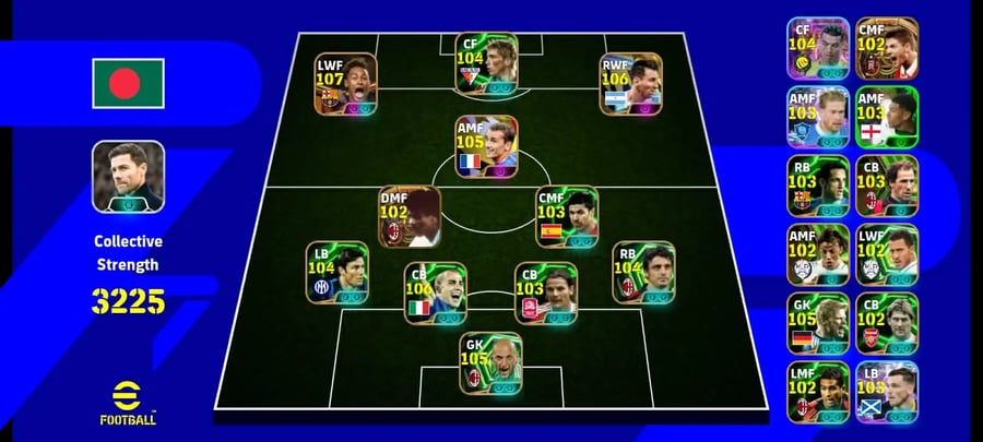 EFOOTBALL✅COLLECTIVE STRENGTH 3205✅GOYEKAR 104✅BACKENBUER 105✅VAN DAR SAR 107✅BEST 108 RATED PLAYER✅TOP SQUAD