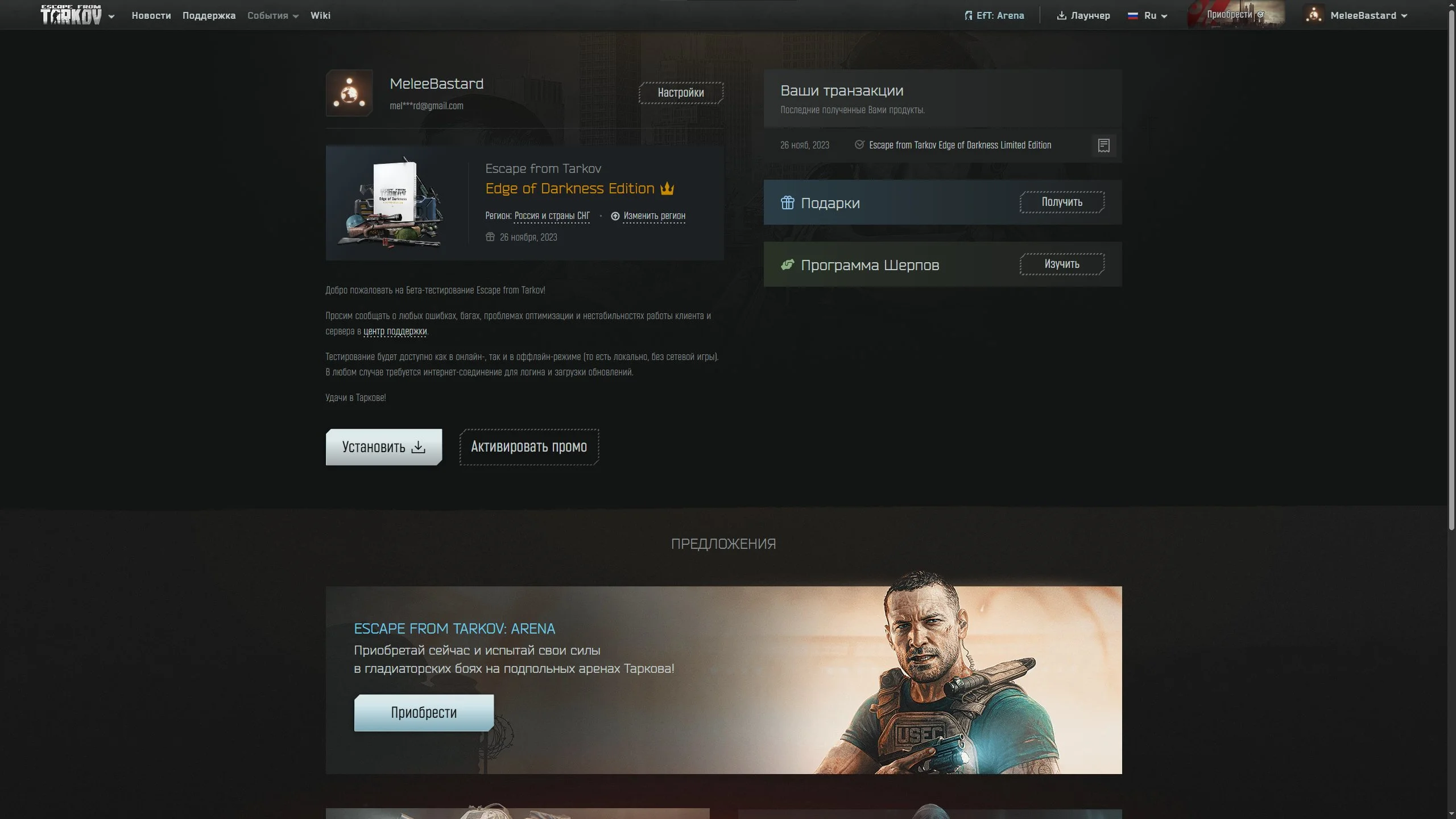 EFT5 //Edge of Darkness Edition + 1700 Hours + Prestige 1 + KAPPA Path Unlocked + Max Rewards + 20B Rubles