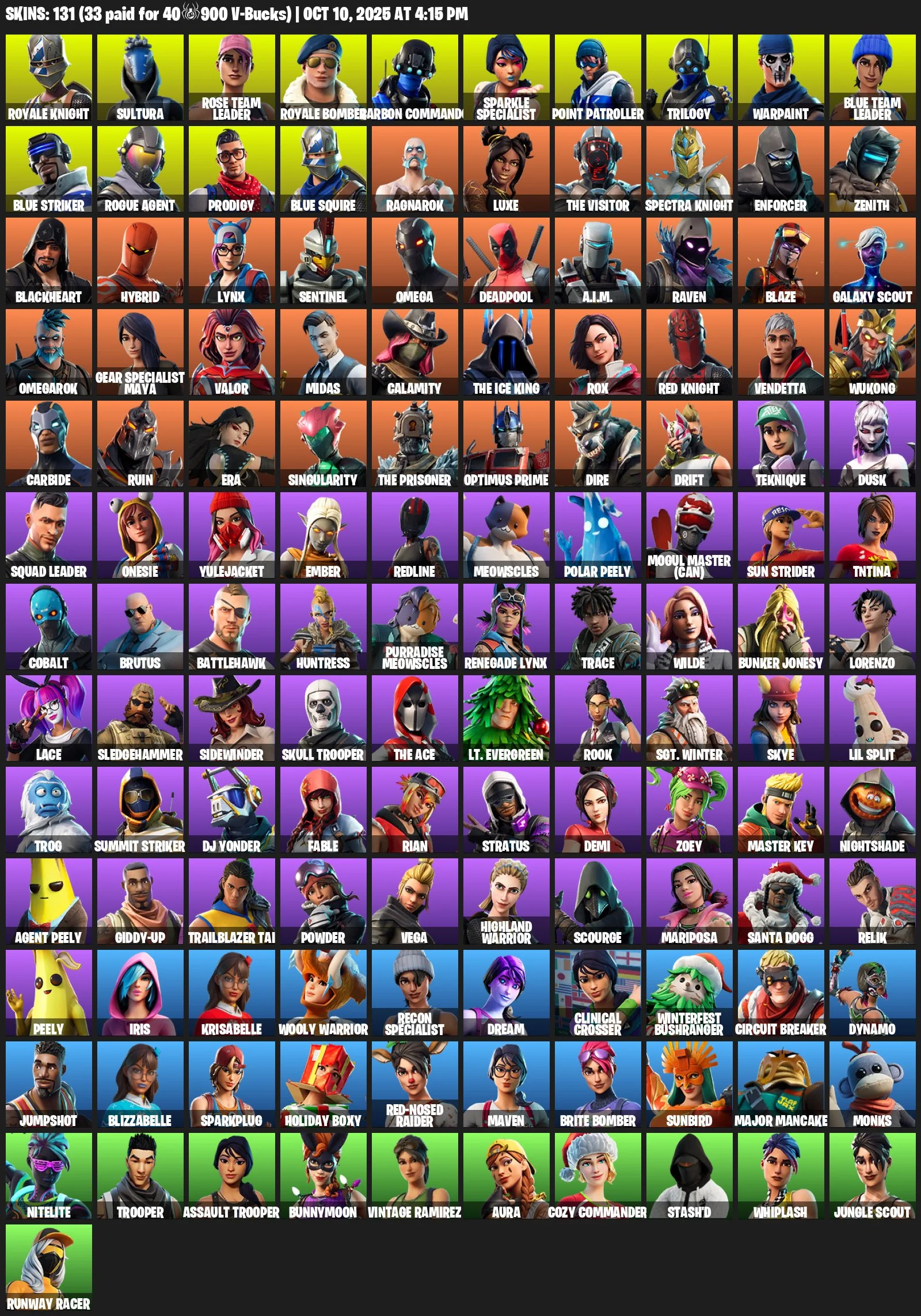 131 skins | OG STW | Sparkle Specialist | Merry Mint Axe | Minty | Blue Squire | Royale Knight
