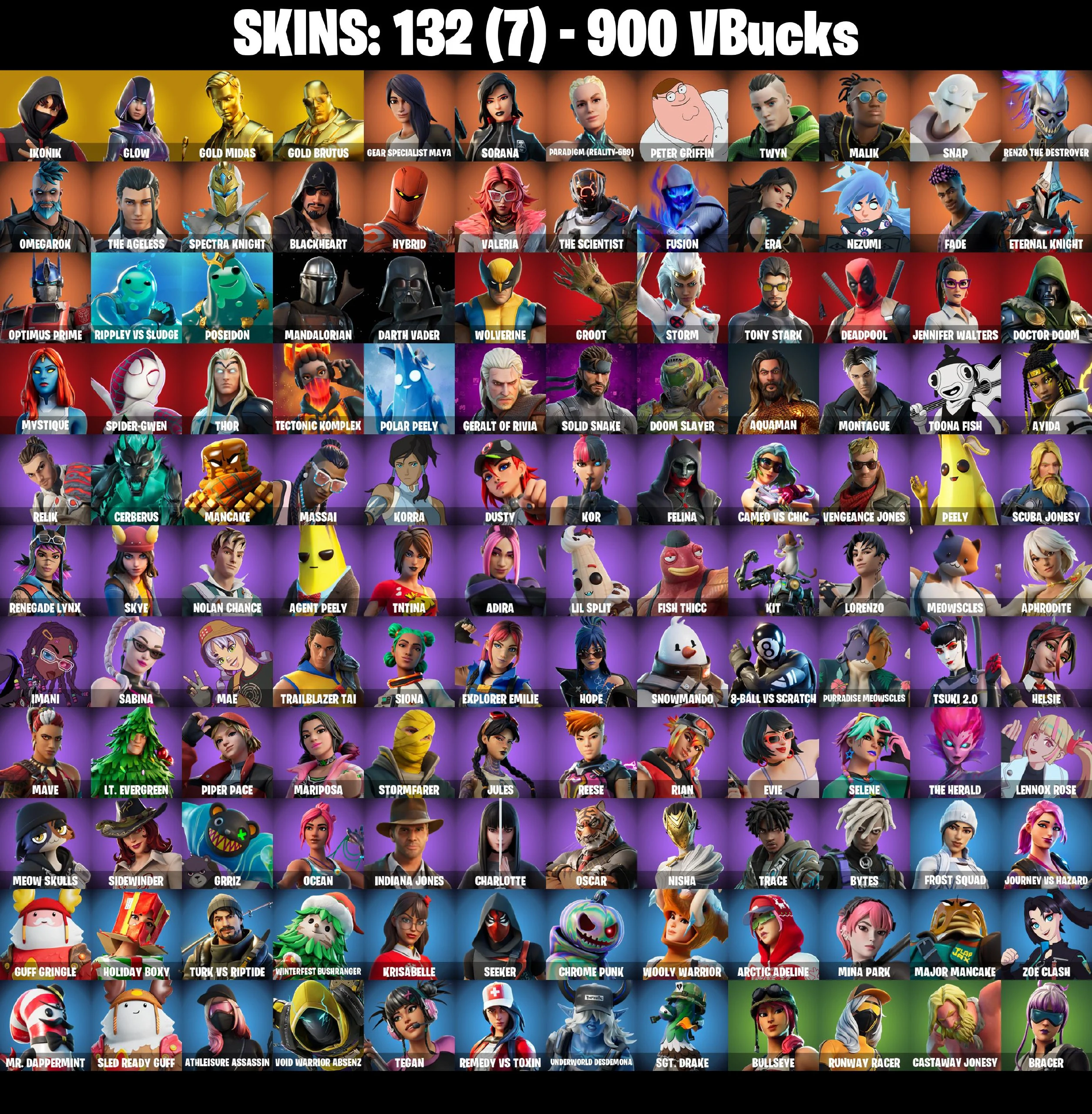 🎆132 SKINS ⚡️PC/PSN/XBOX⚡️ IKONIK 👑 GLOW 👑 GOLD MIDAS 👑 GOLD BRUTUS 👑 GEAR SPECIALIST MAYA 👑 SORANA 👑 PARADIGM (REALITY-659) 👑 PETER GRIFFIN ⚡️ 900 VB #M633