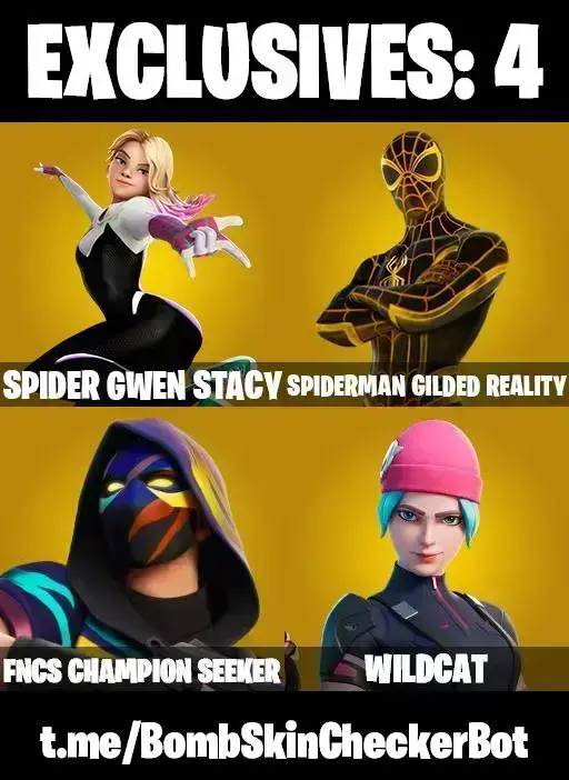 156 SKINS | WILDCAT | JOLTARA | SKULL TROOPER | GILDED SPIDER-MAN | SPIDER-GWEN STACY | CORUSCANT GUARD | DARTH VADER | AHSOKA TANO | WOLF PACK TROOPER | LARA CROFT | JOHN CENA | GOKU BLACK | JOHN CENA | ERA MAX | CHARLOTTE MAX |
