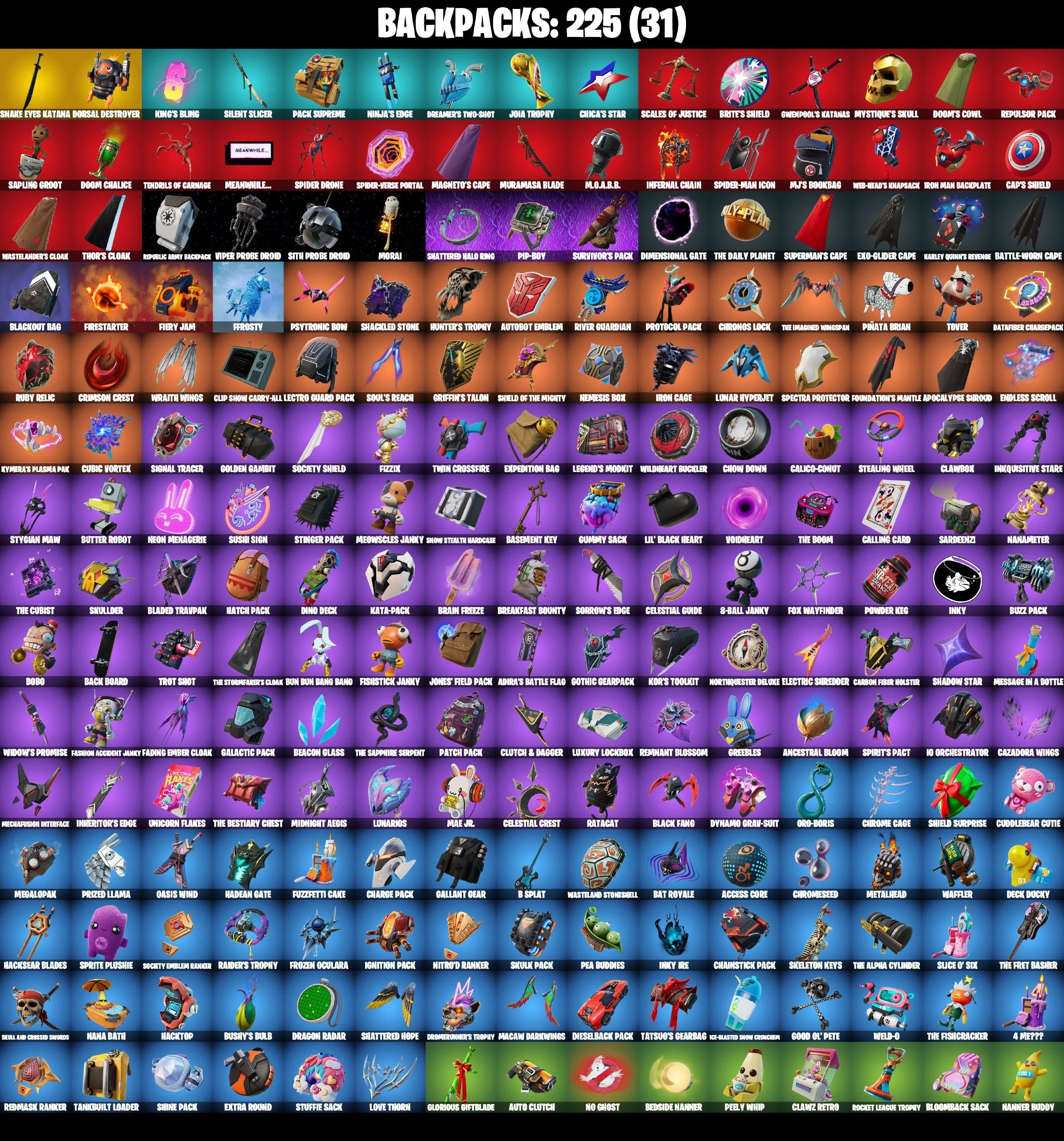 191 SKINS ⸱ PRINCESS LEXA ⸱ LEBRON JAMES ⸱ CONTRACT GILLER ⸱ SPIDER-MAN MAXED ⸱ SNAKE EYES ⸱ JOLTARA ⸱ DEADFIRE ⸱ DARTH MAUL ⸱ RUBY SHADOWS ⸱ STYX ⸱ TOONA FISH ⸱ SPIDER-GWEN ⸱ LARA CROFT ⸱ BLIZZABELLE ⸱ WOLVERINE ZERO ⸱ REBIRTH RA